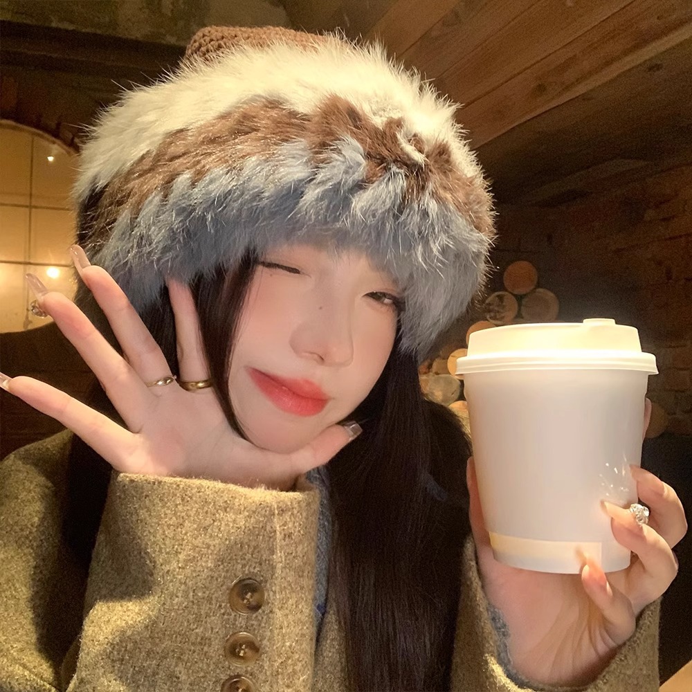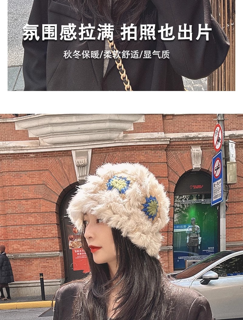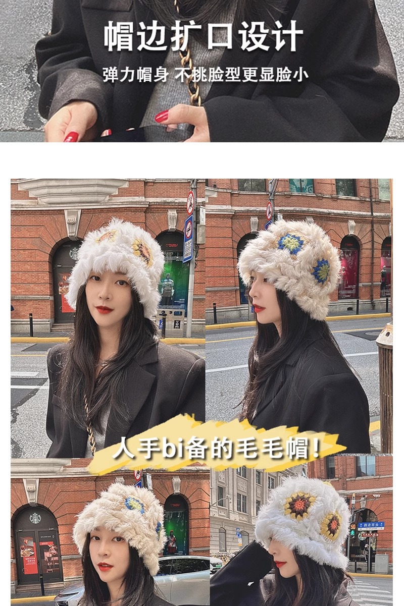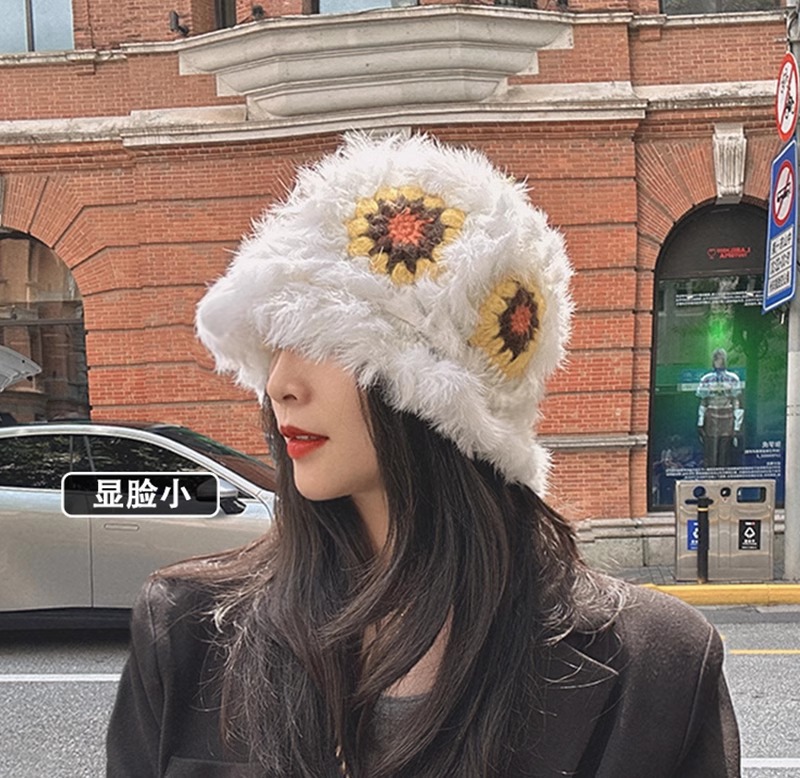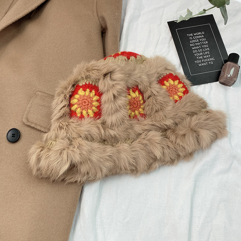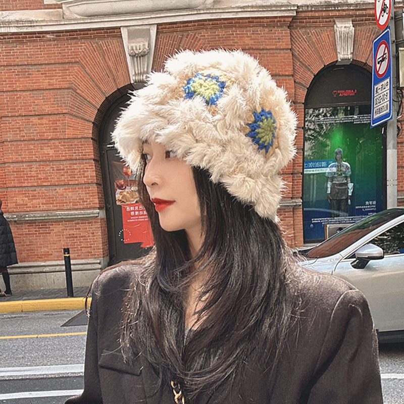 토끼 모피 각성 사자 모자 여성용 2023 년 새로운 가을 겨울 봉제 어부 모자 작은 양동이 모피 분지 모자를 보여주는 모든 경기 얼굴스토어 가기