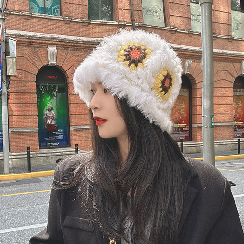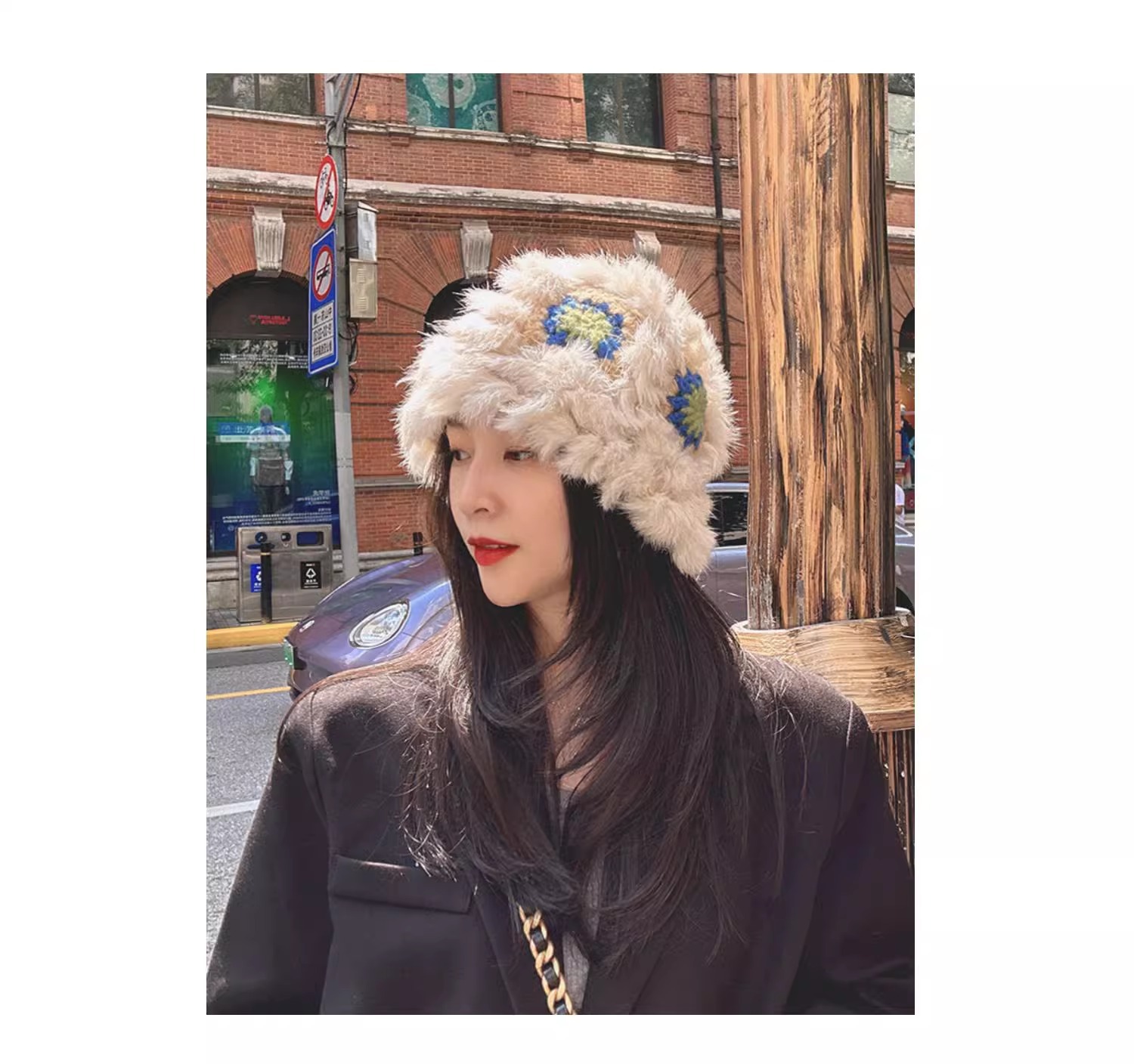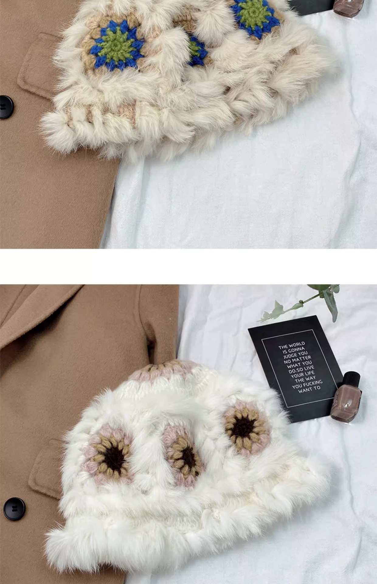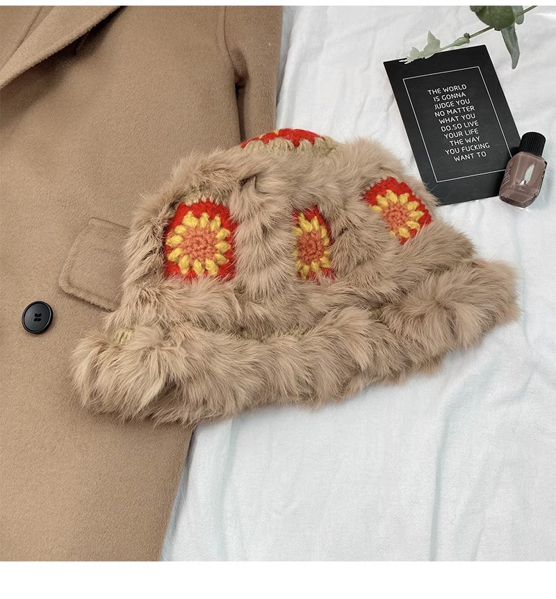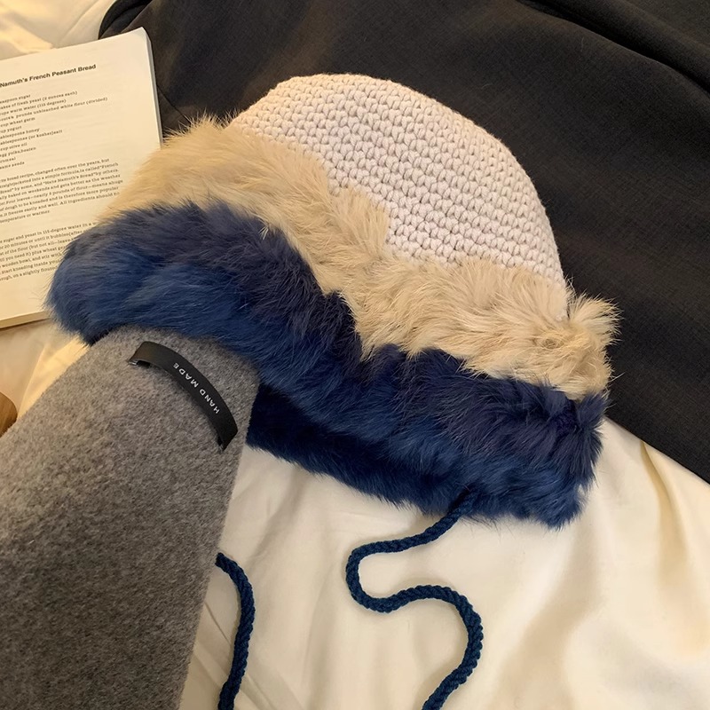 토끼 모피 각성 사자 모자 여성용 2023 년 새로운 가을 겨울 봉제 어부 모자 작은 양동이 모피 분지 모자를 보여주는 모든 경기 얼굴스토어 가기