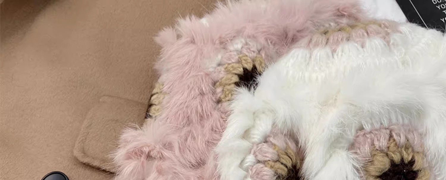• 컬러 블록 토끼 모피-파란색과 보라색