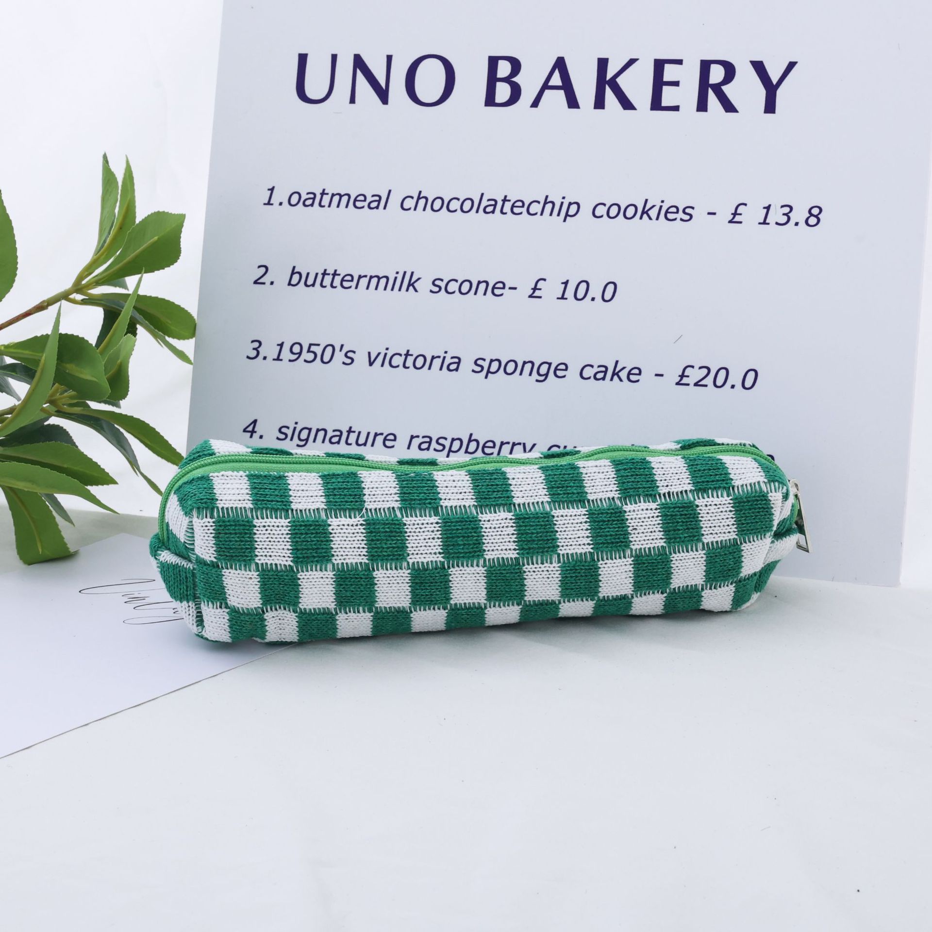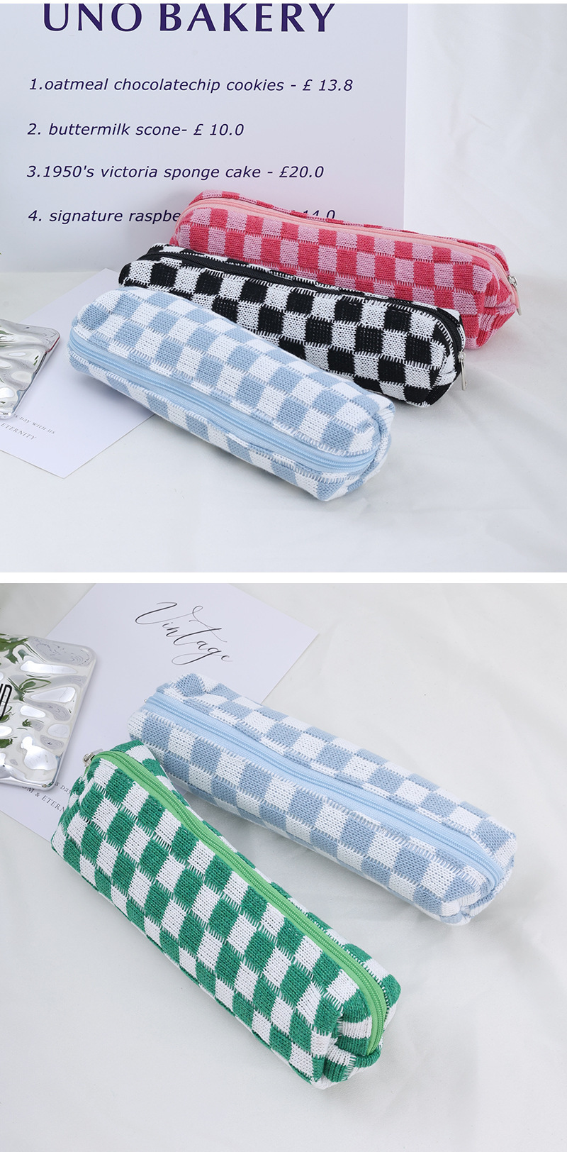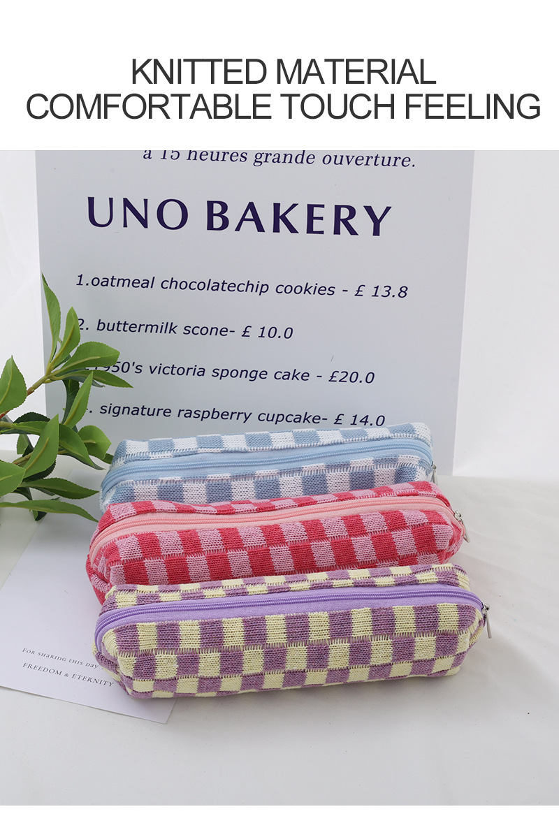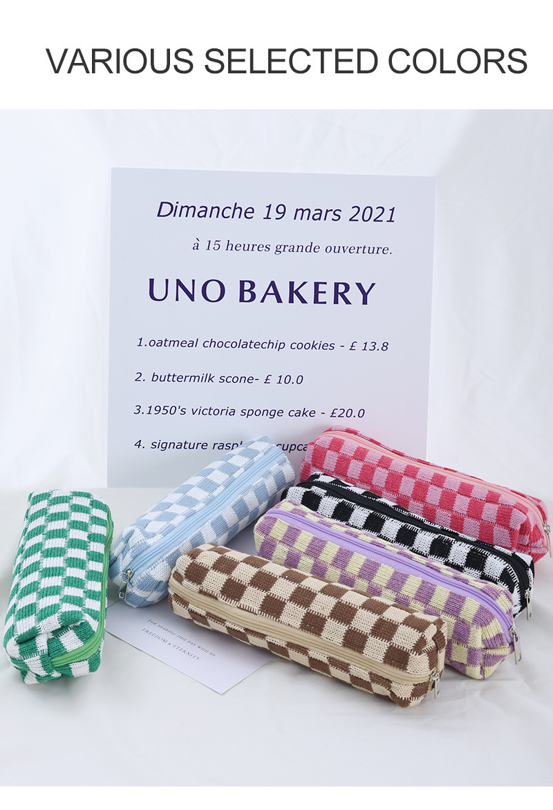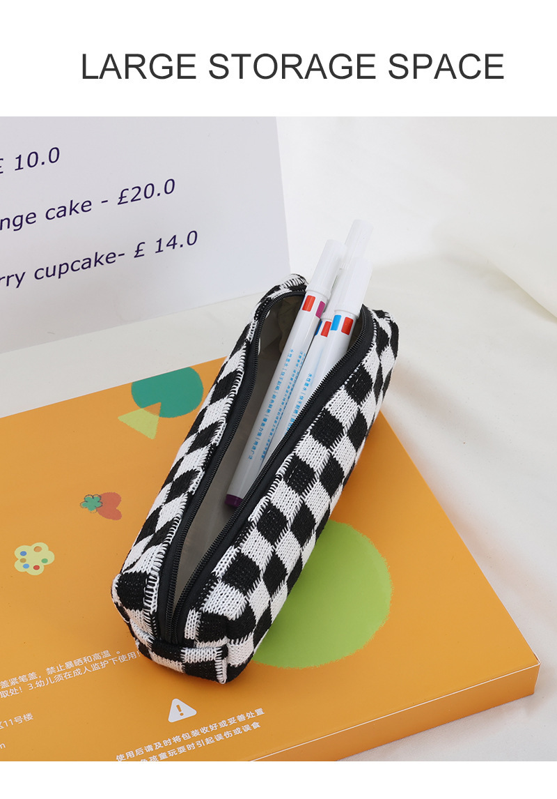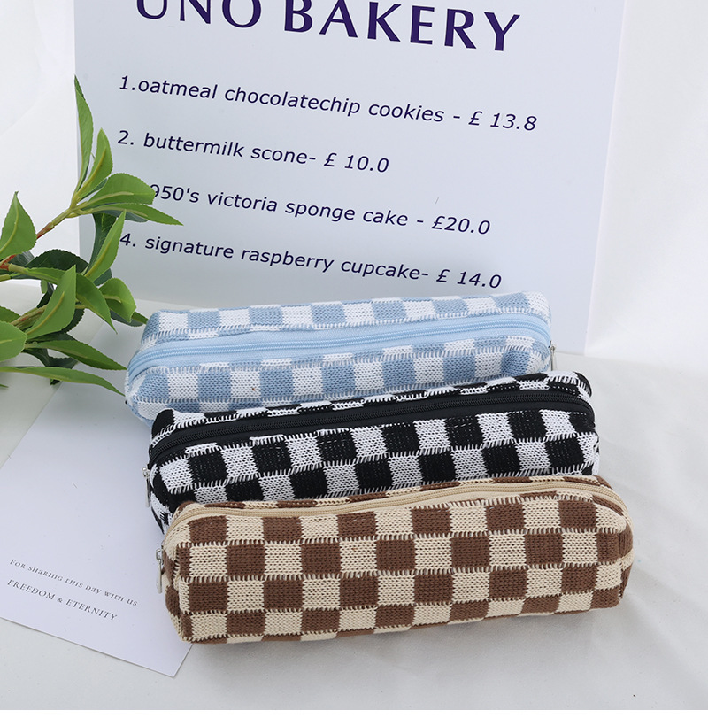 한국 스타일 인스 체크무늬 니트 필통 대용량 고급스러운 학생용 필통 중고등학생 트렌디 필통