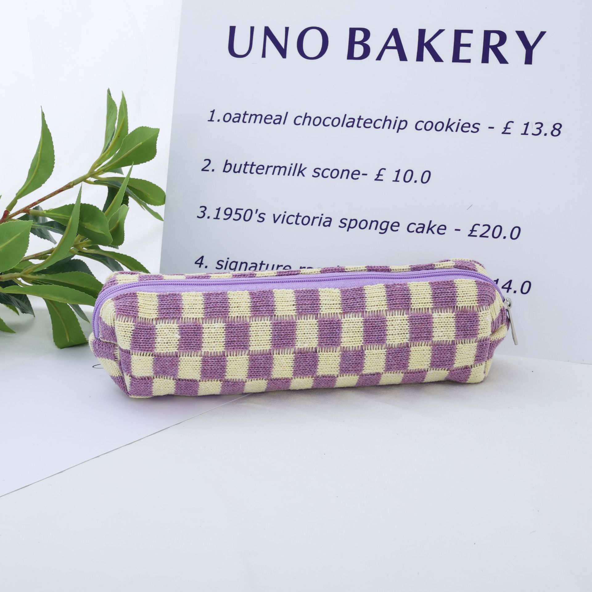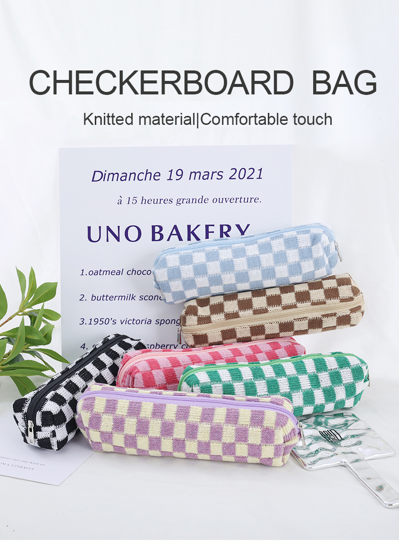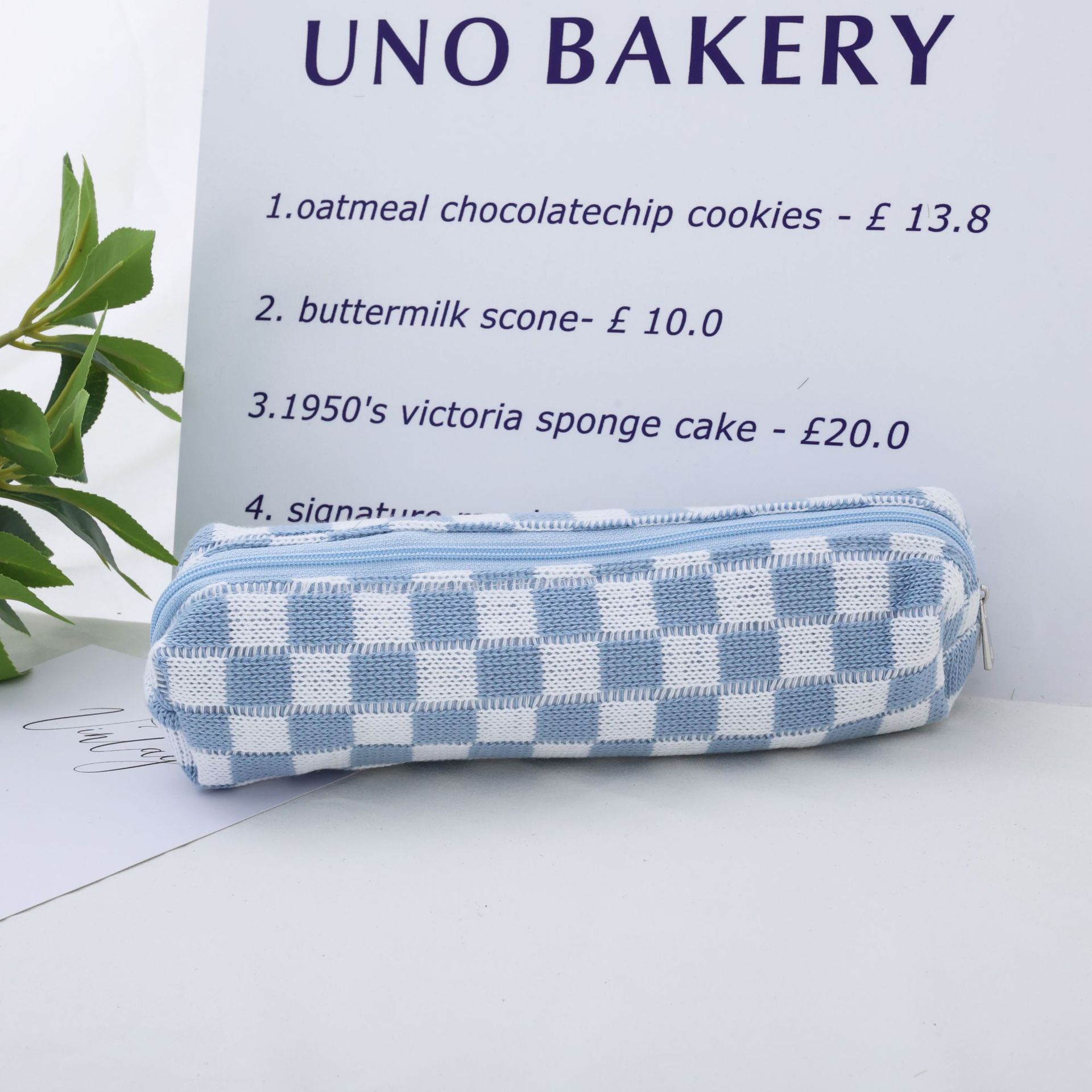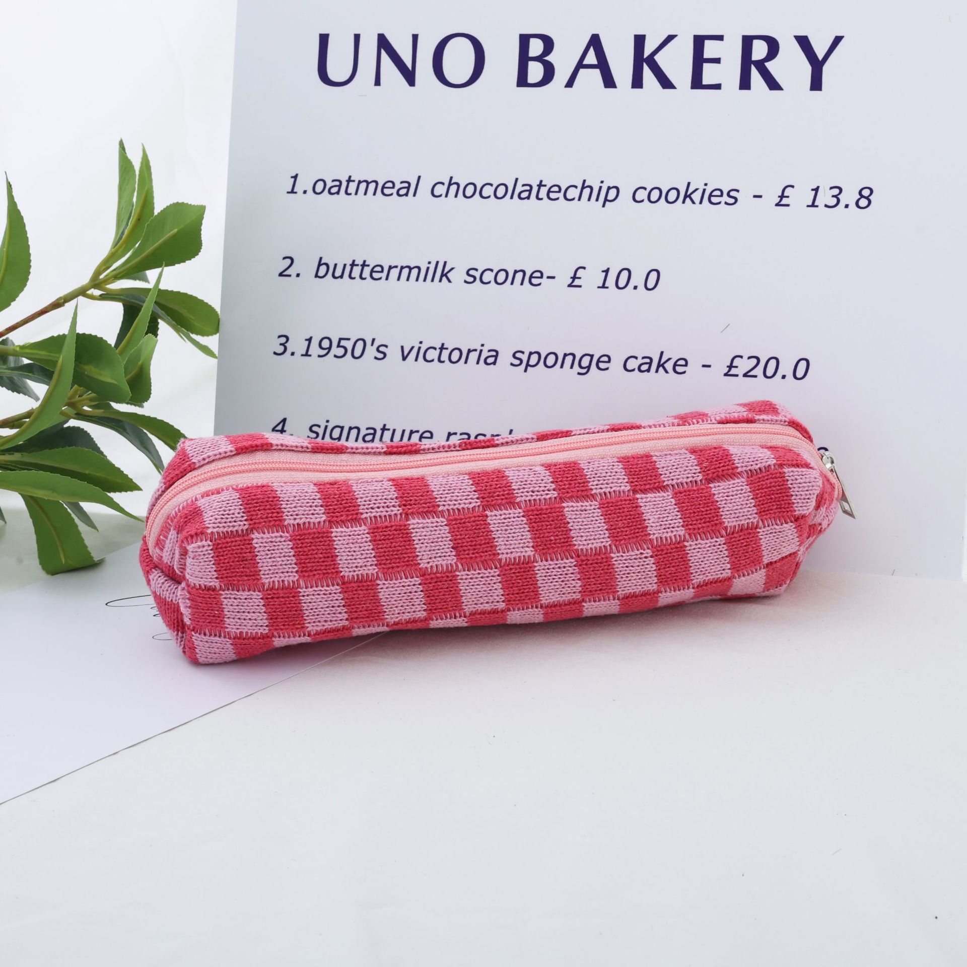 한국 스타일 인스 체크무늬 니트 필통 대용량 고급스러운 학생용 필통 중고등학생 트렌디 필통