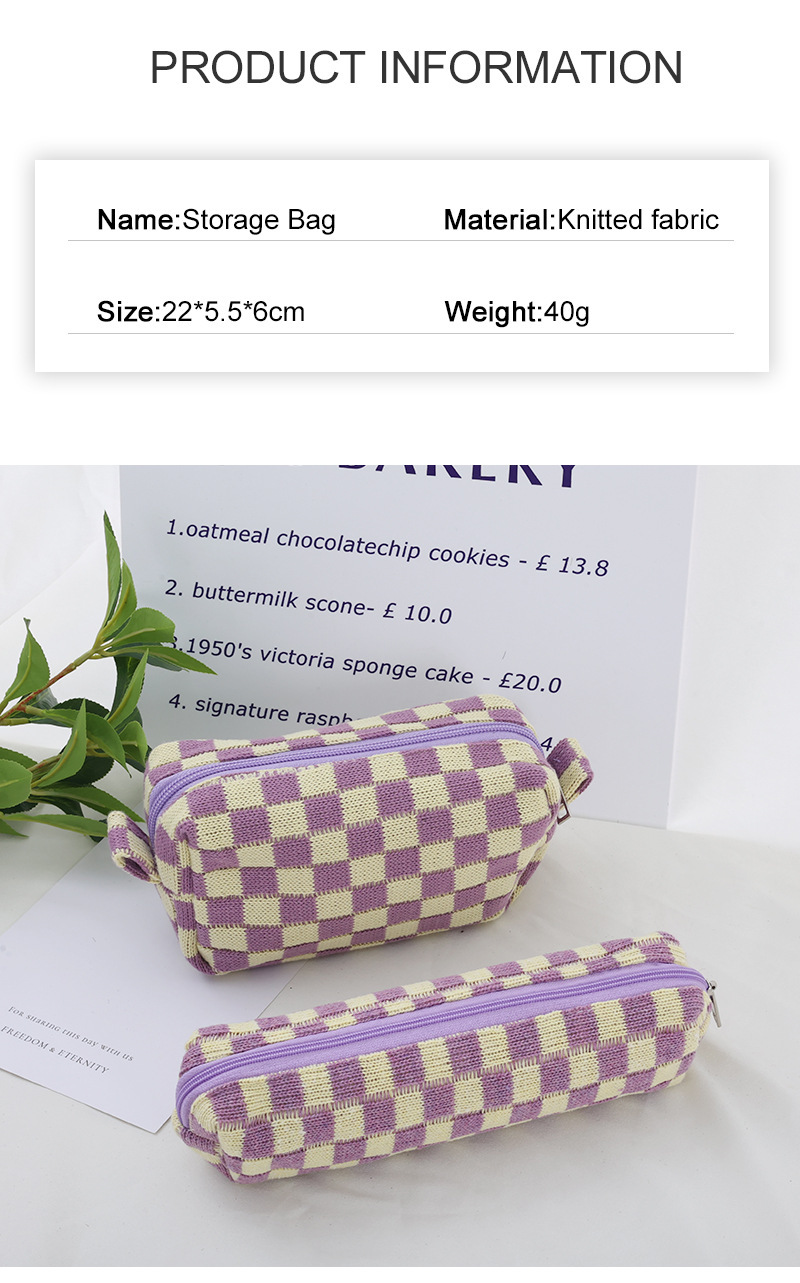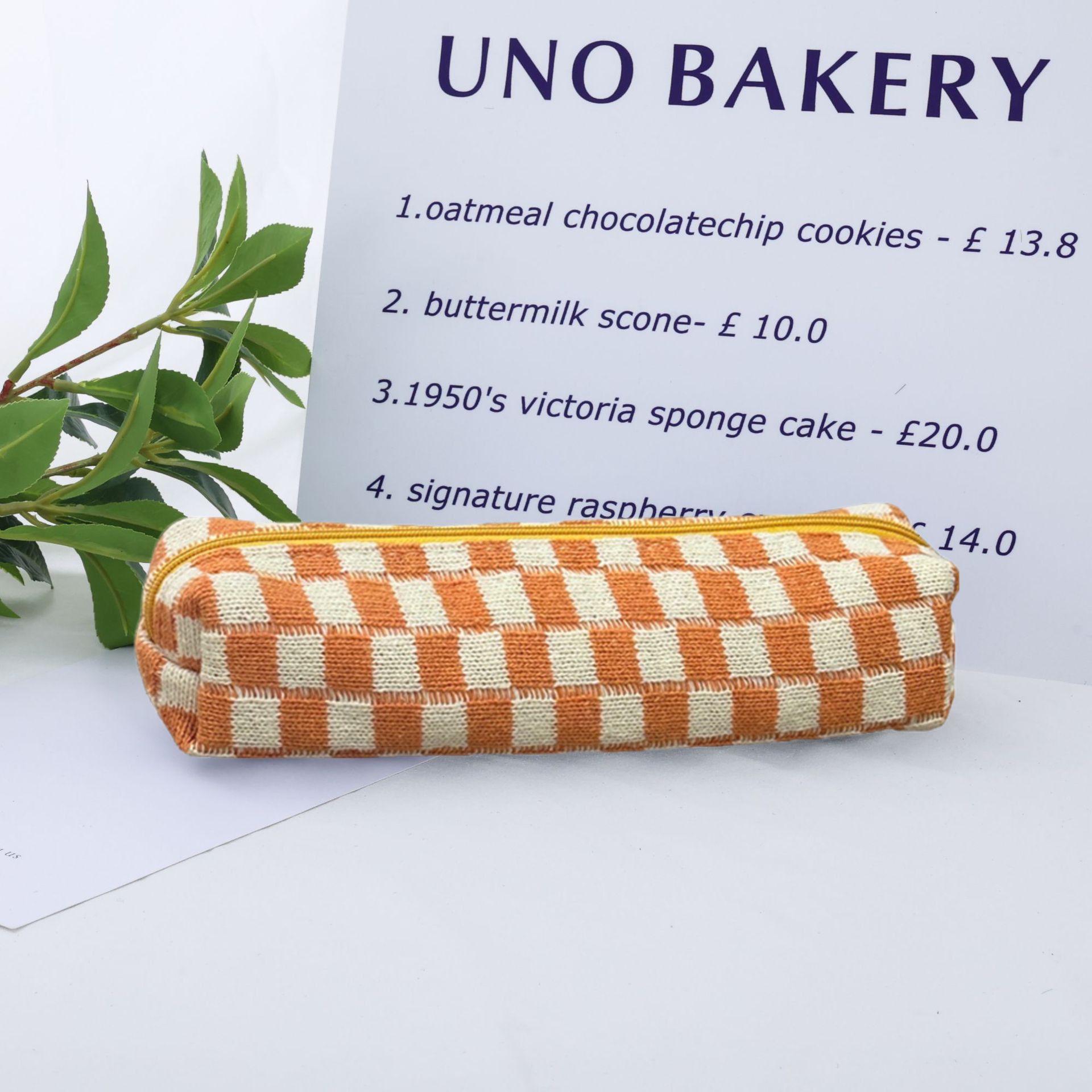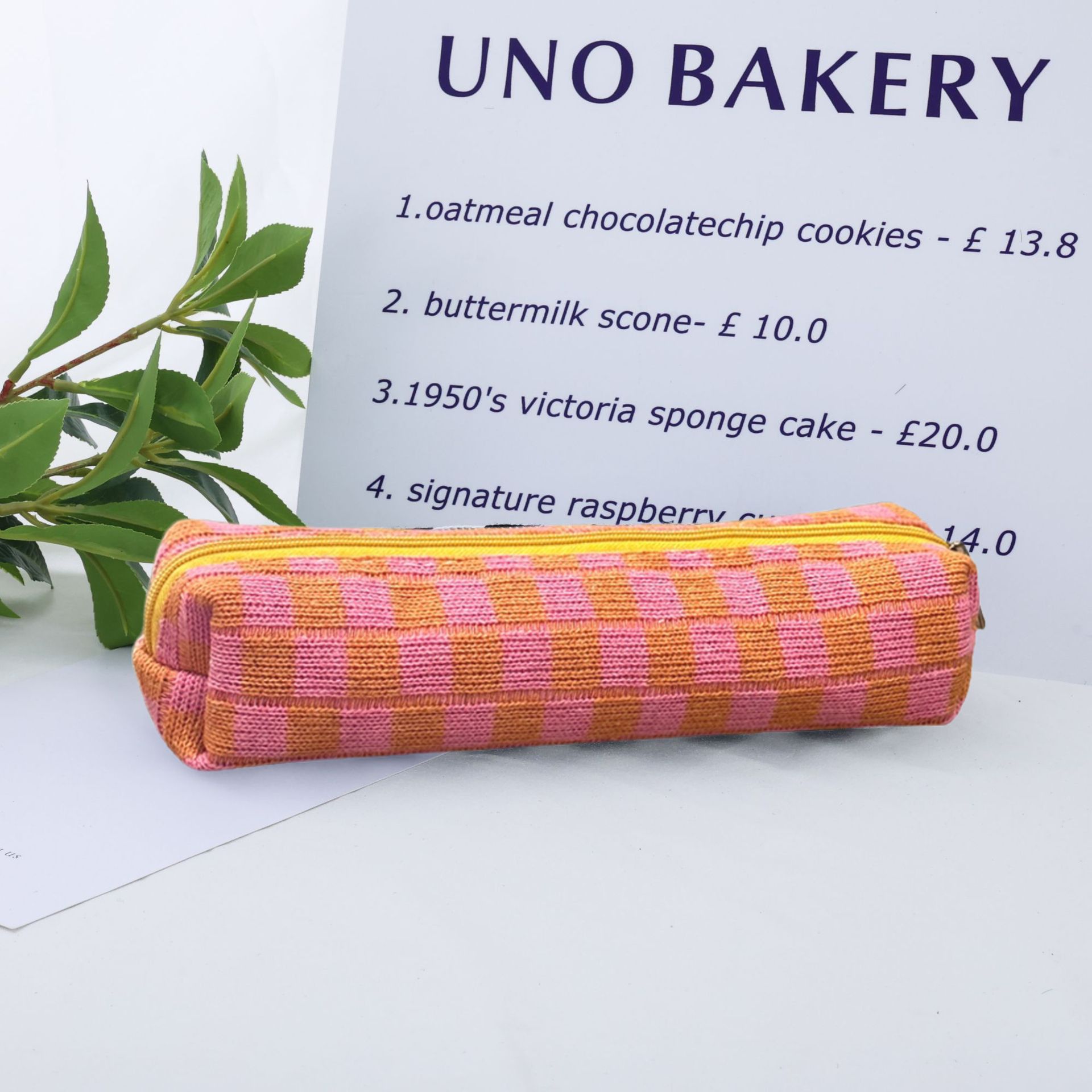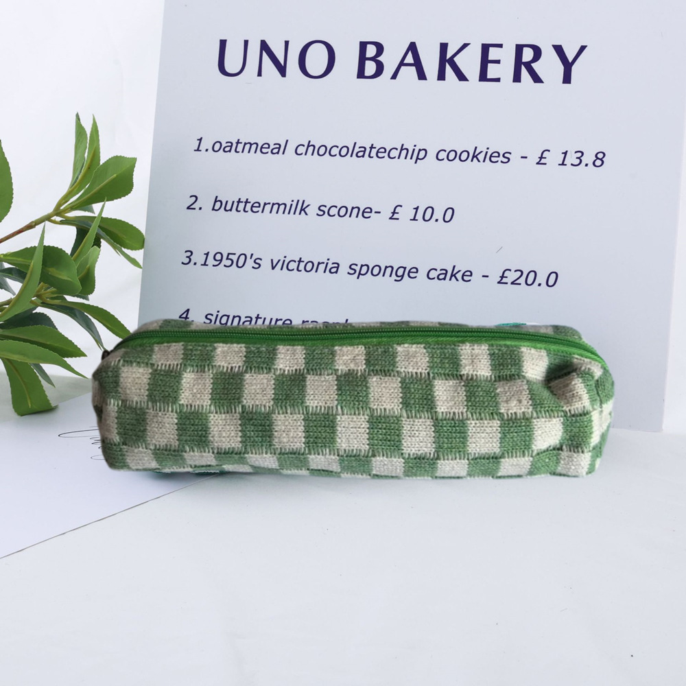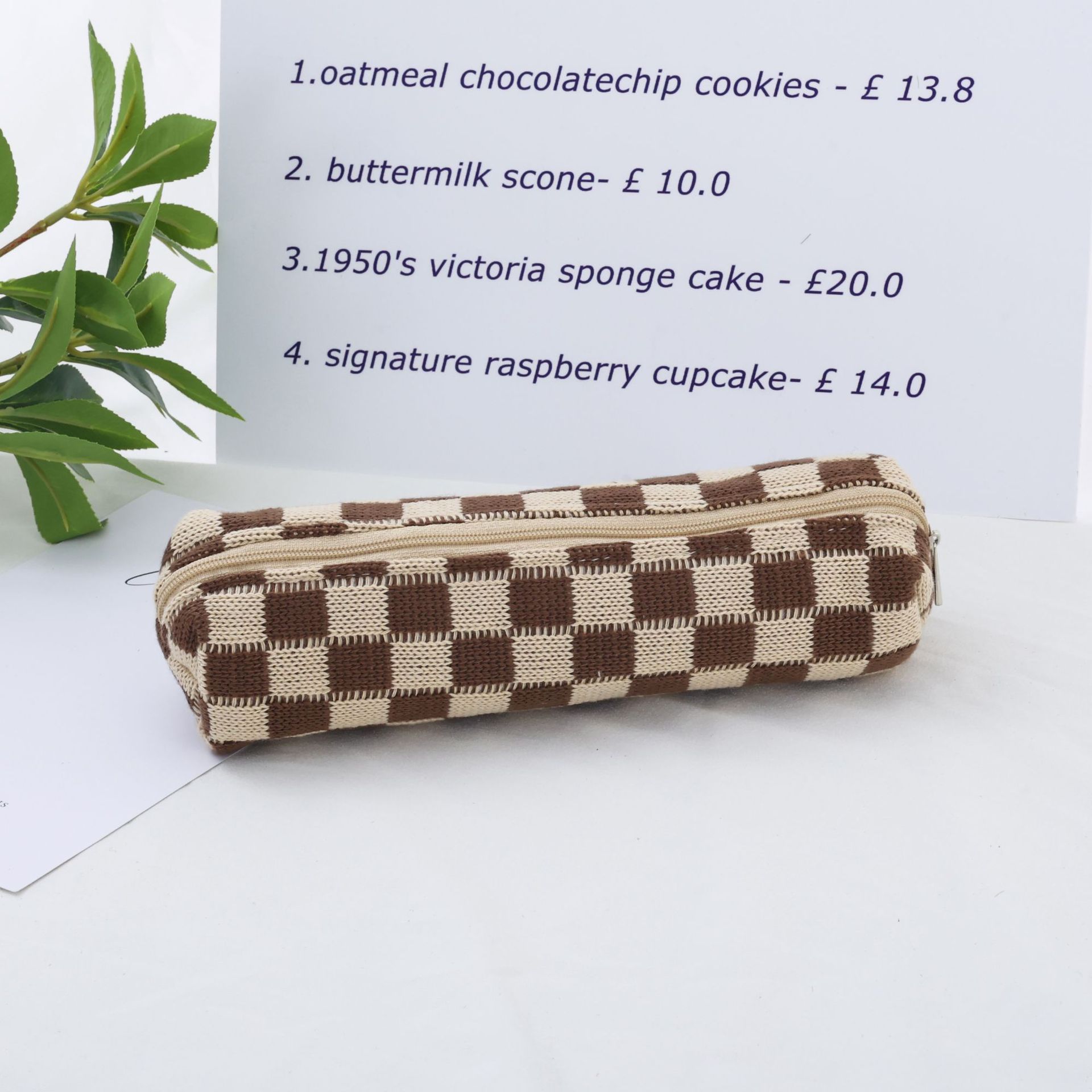 한국 스타일 인스 체크무늬 니트 필통 대용량 고급스러운 학생용 필통 중고등학생 트렌디 필통