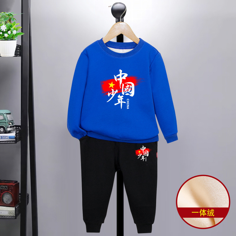 • 기모 - 별 다섯 개 중국 소년 (바지 프린트 동일) - 블루+블랙