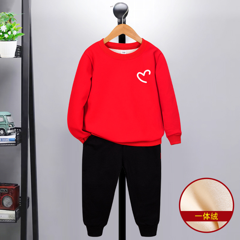 • 기모 - 사랑해, 중국 (바지에 그림 인쇄 없음) - 레드+블랙