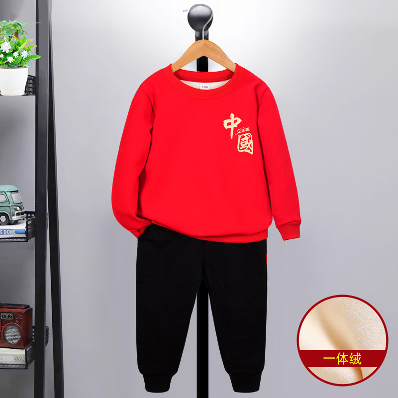 • 기모 안감 - 사랑 나눔 중국 (바지에 그림 인쇄 없음) - 레드+블랙