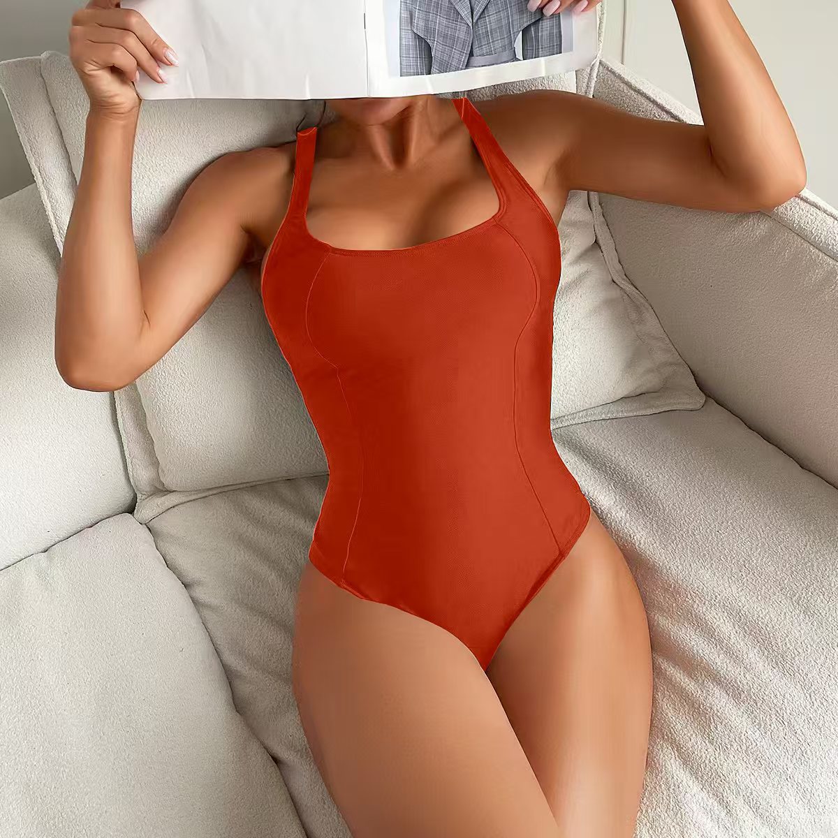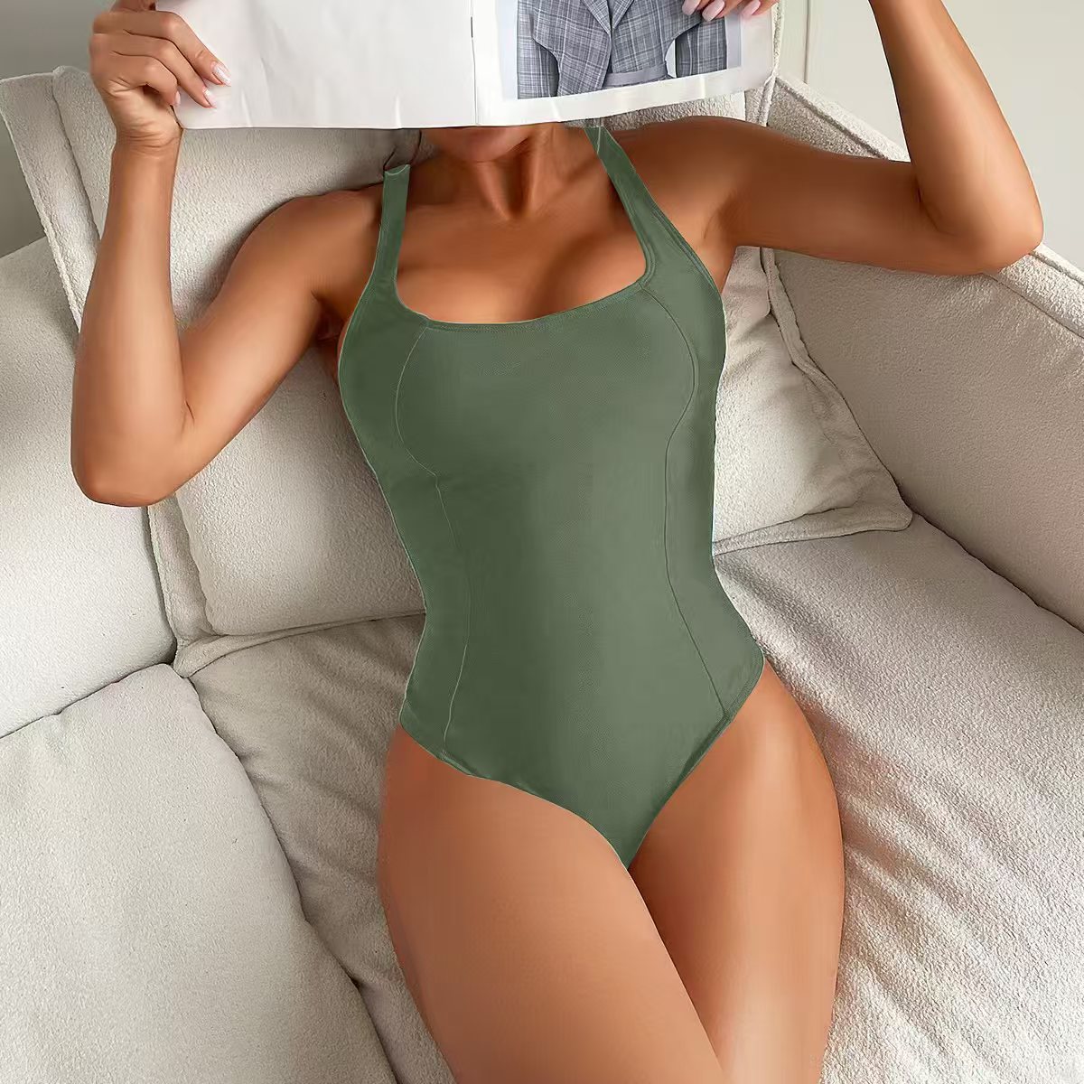 새로운 슬림핏 보수적인 원피스 수영복 크로스 보더 솔리드 컬러 중공 비치 비키니 수영복 유럽과 미국을 세트 아름다운 백 원피스