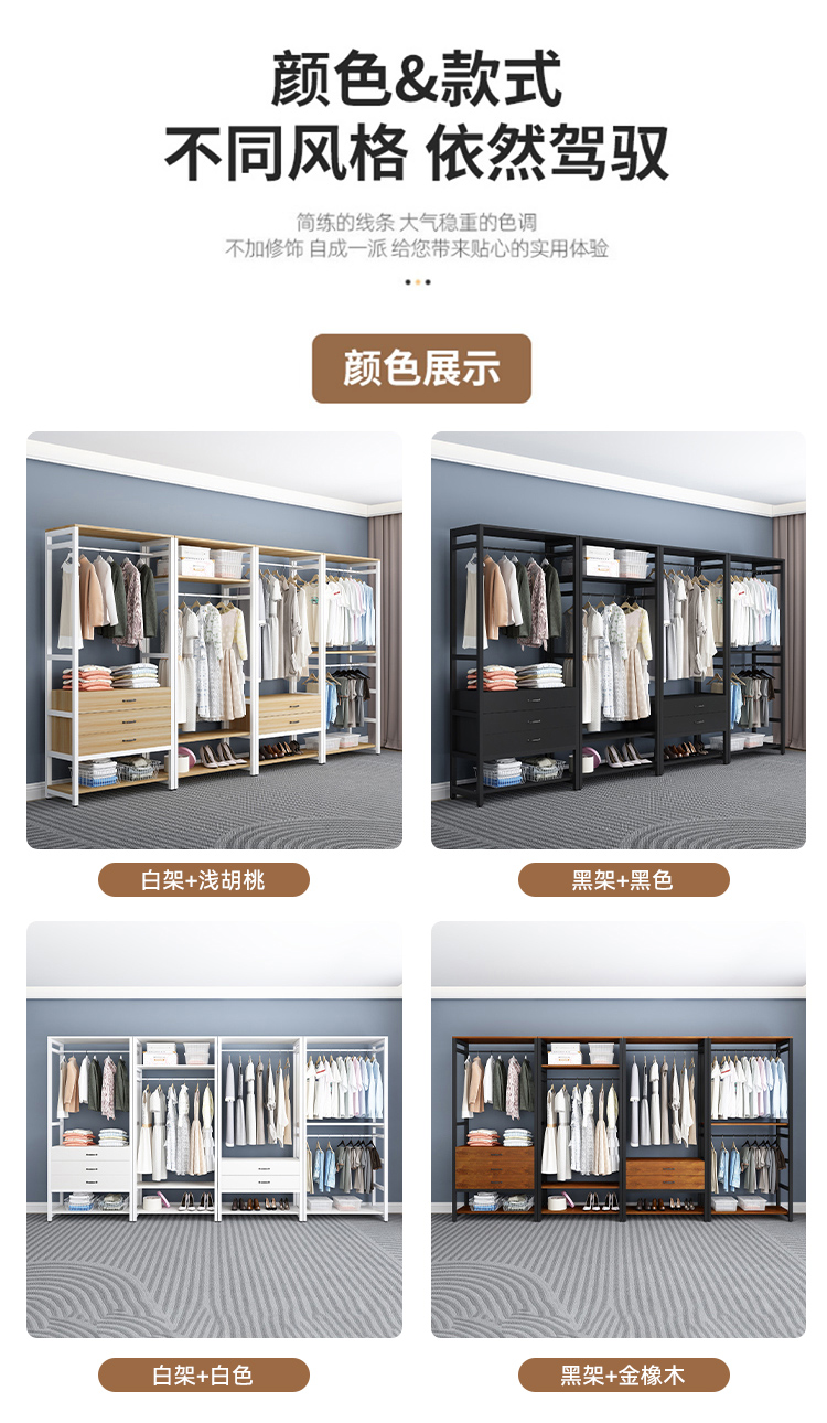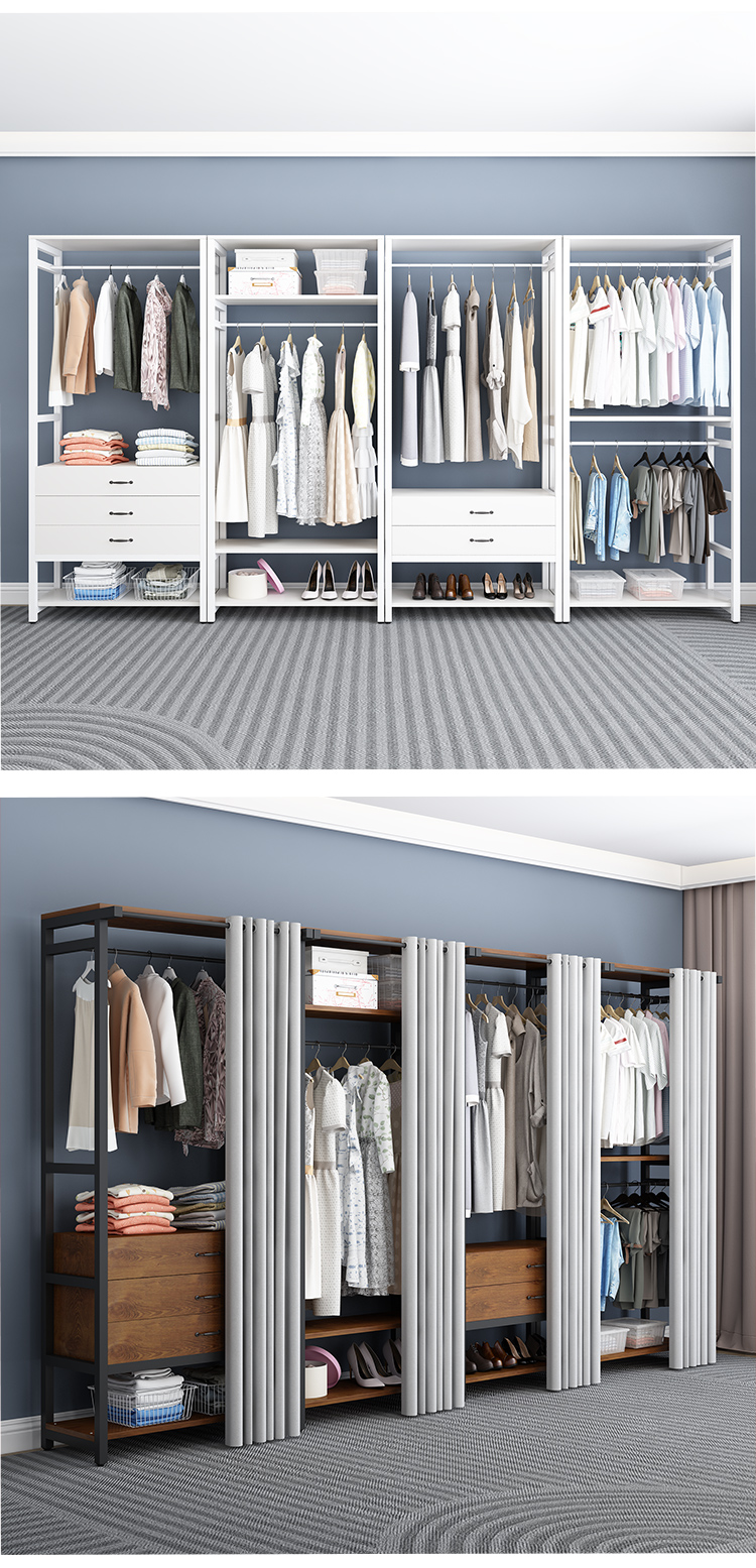 옷장 바닥 가구 침실 간단한 옷장 옷 교수형 신발 캐비닛 통합 스테인레스 스틸 옷장 금속 옷장 보관 랙스토어 가기