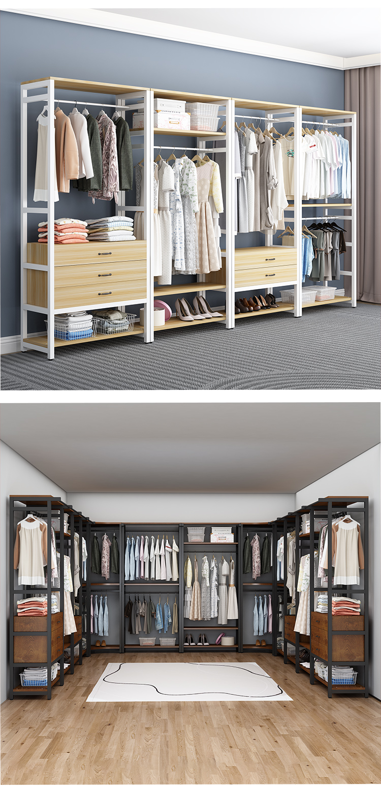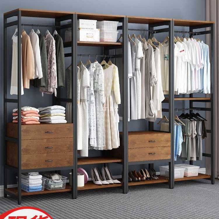 옷장 바닥 가구 침실 간단한 옷장 옷 교수형 신발 캐비닛 통합 스테인레스 스틸 옷장 금속 옷장 보관 랙