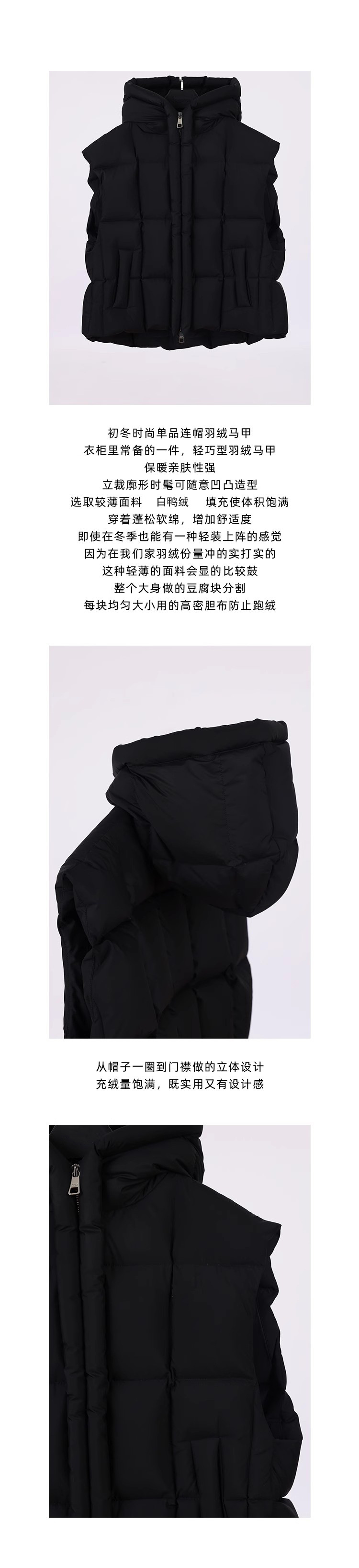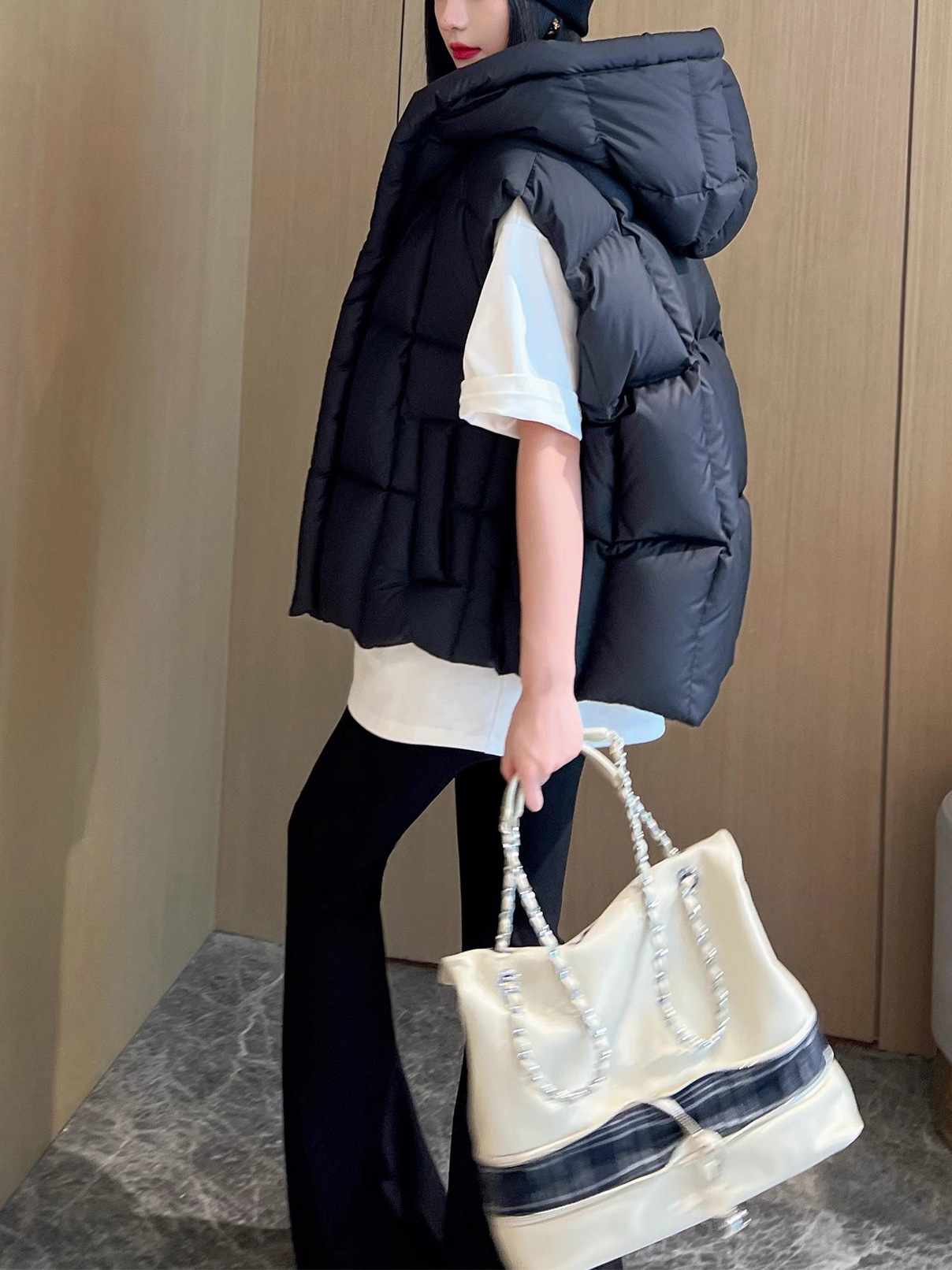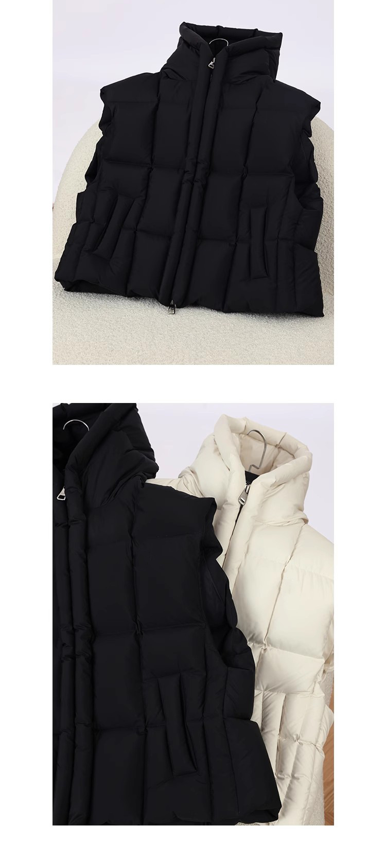 2023 가을 겨울 화이트 덕다운 민소매 다운 조끼 여성용 니치 다운 재킷 경량 따뜻한 후드 디자인스토어 가기