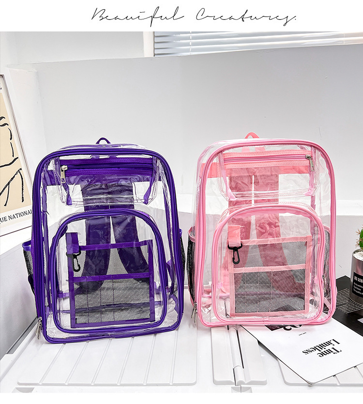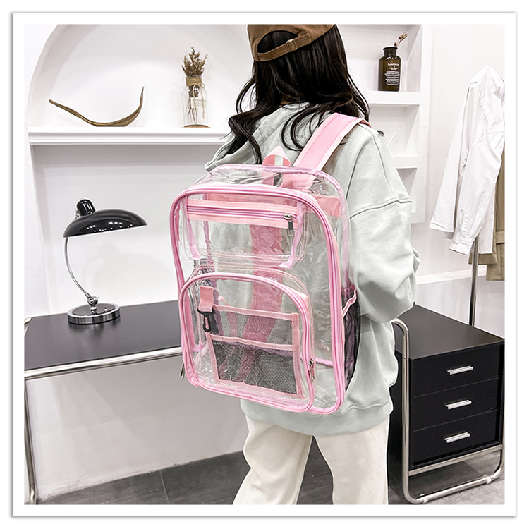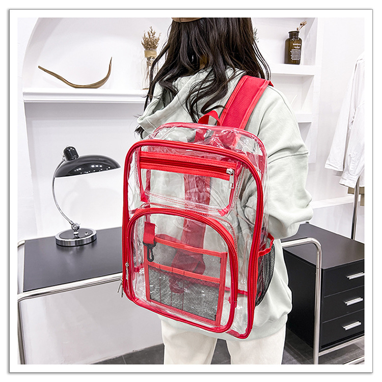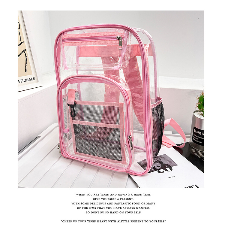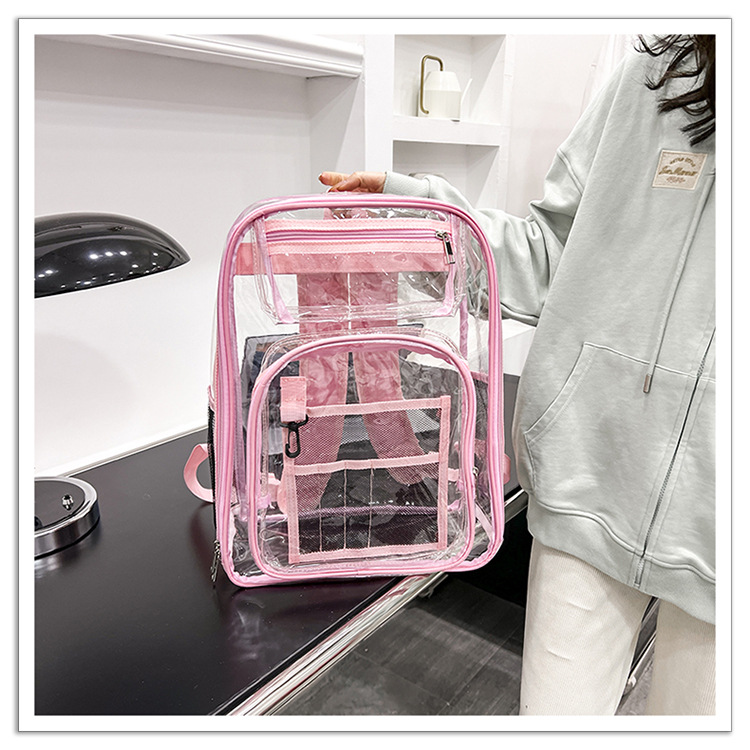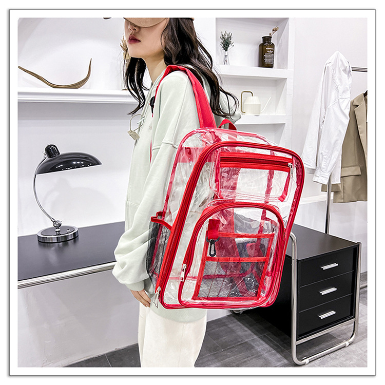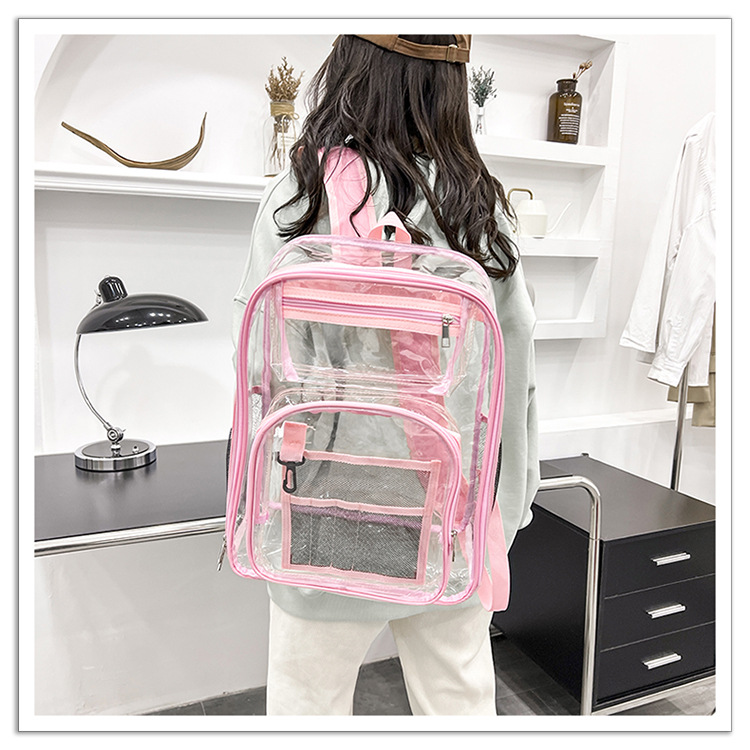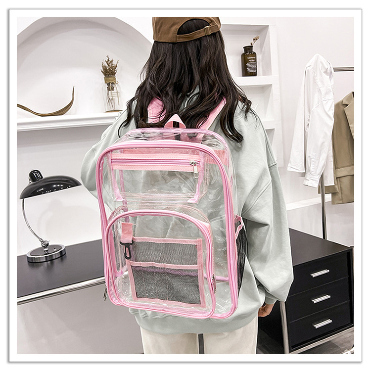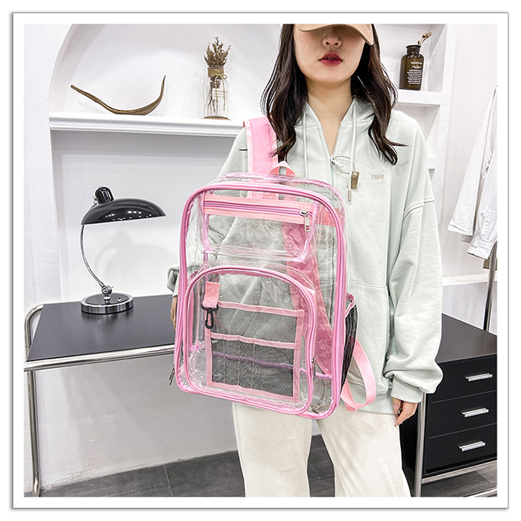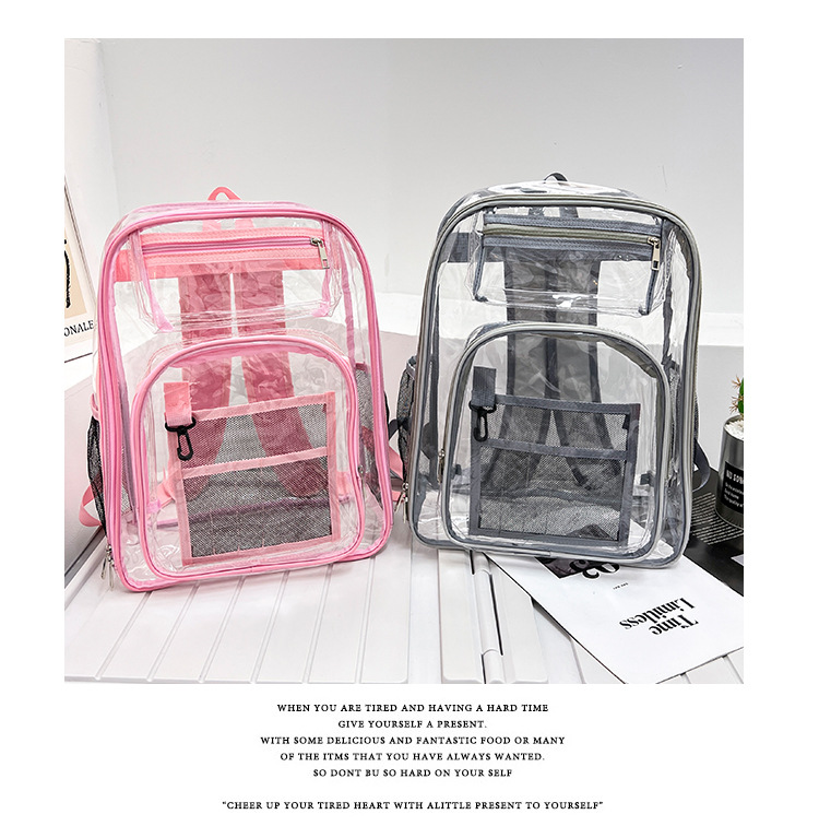 40 실크 국경 아마존 친환경 pvc 투명 배낭 패션 방수 학생 학교 가방 투명 배낭 젤리스토어 가기