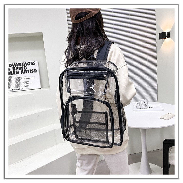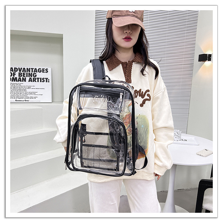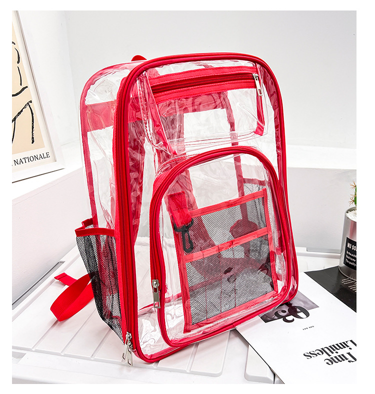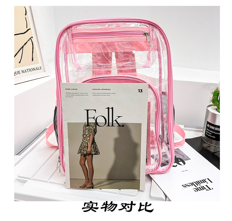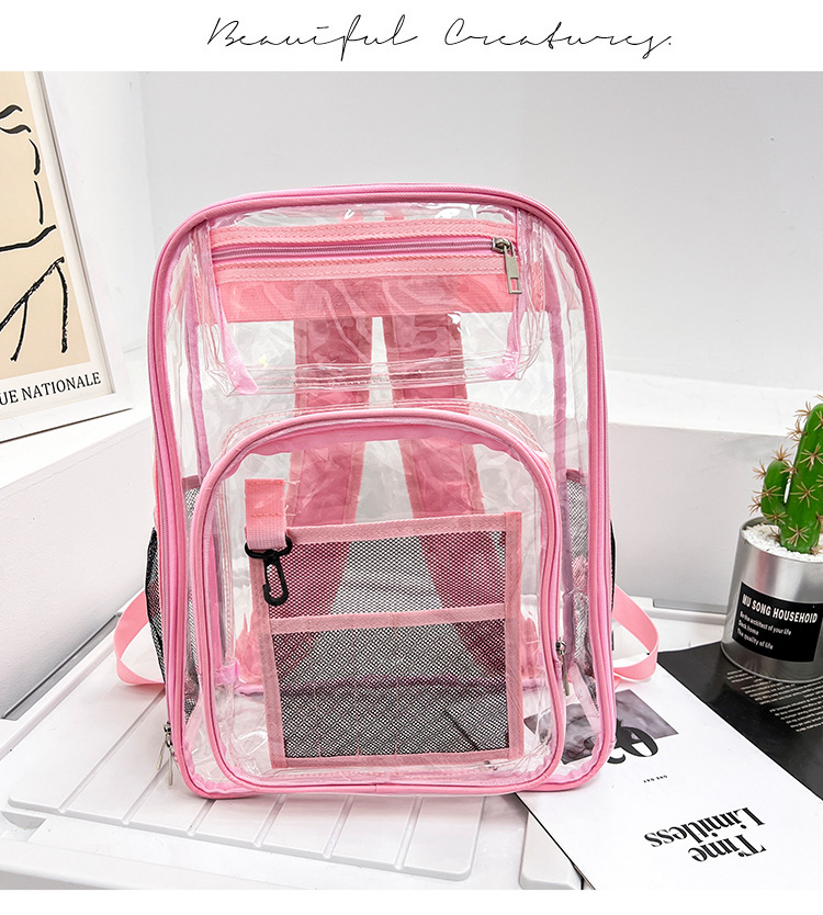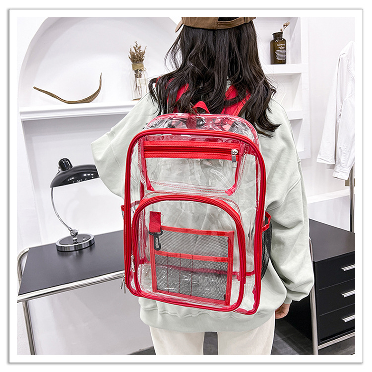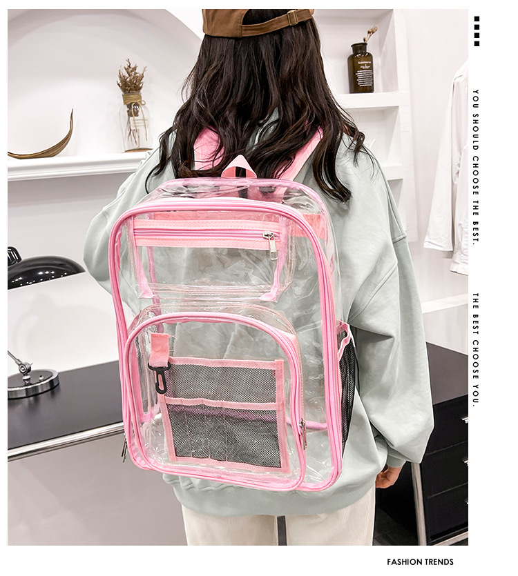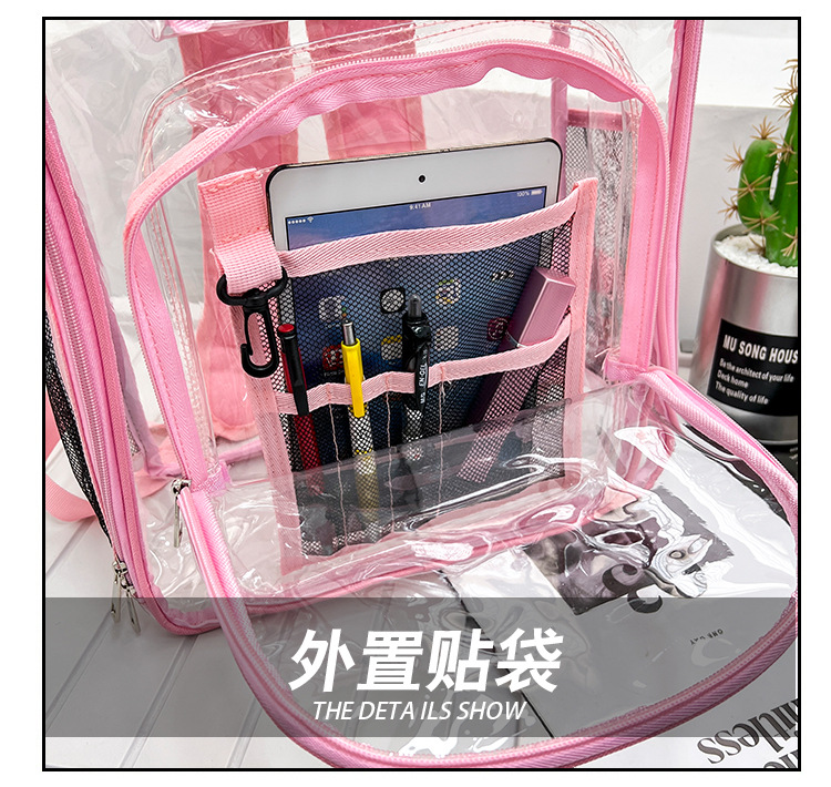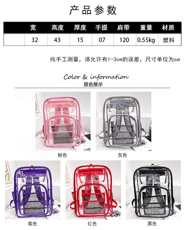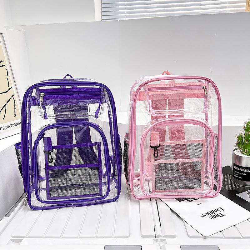 40 실크 국경 아마존 친환경 pvc 투명 배낭 패션 방수 학생 학교 가방 투명 배낭 젤리스토어 가기