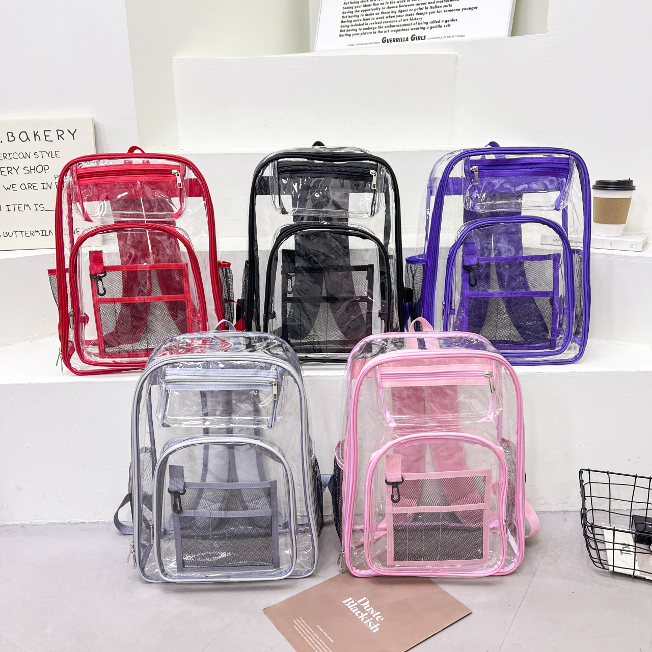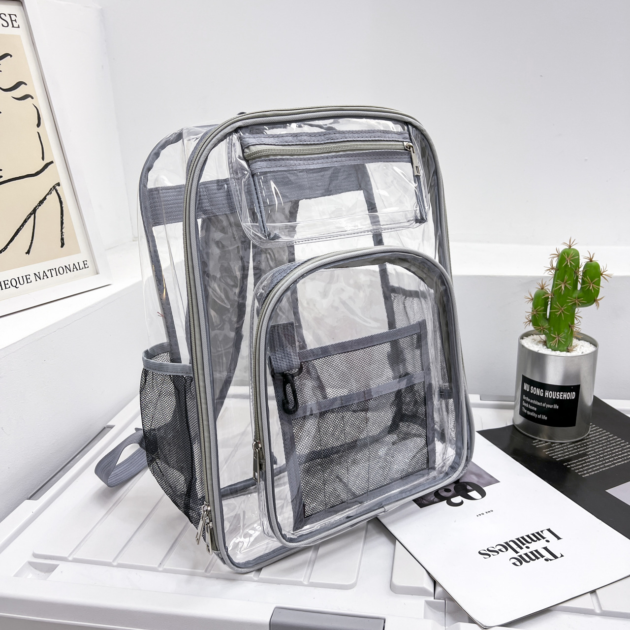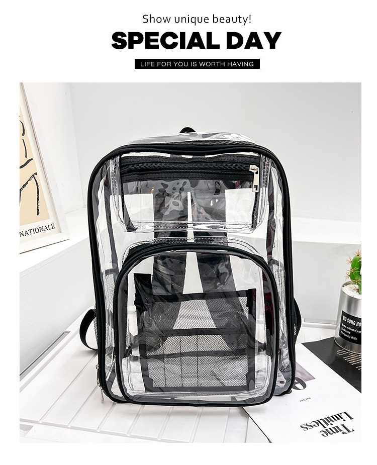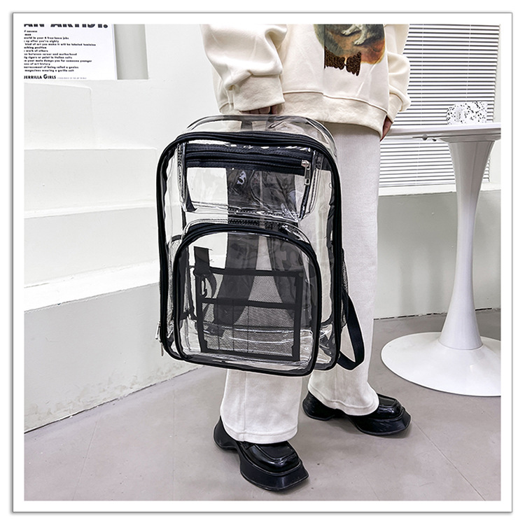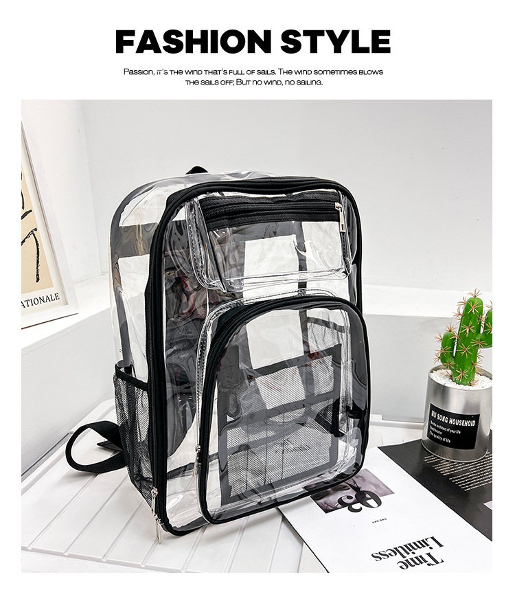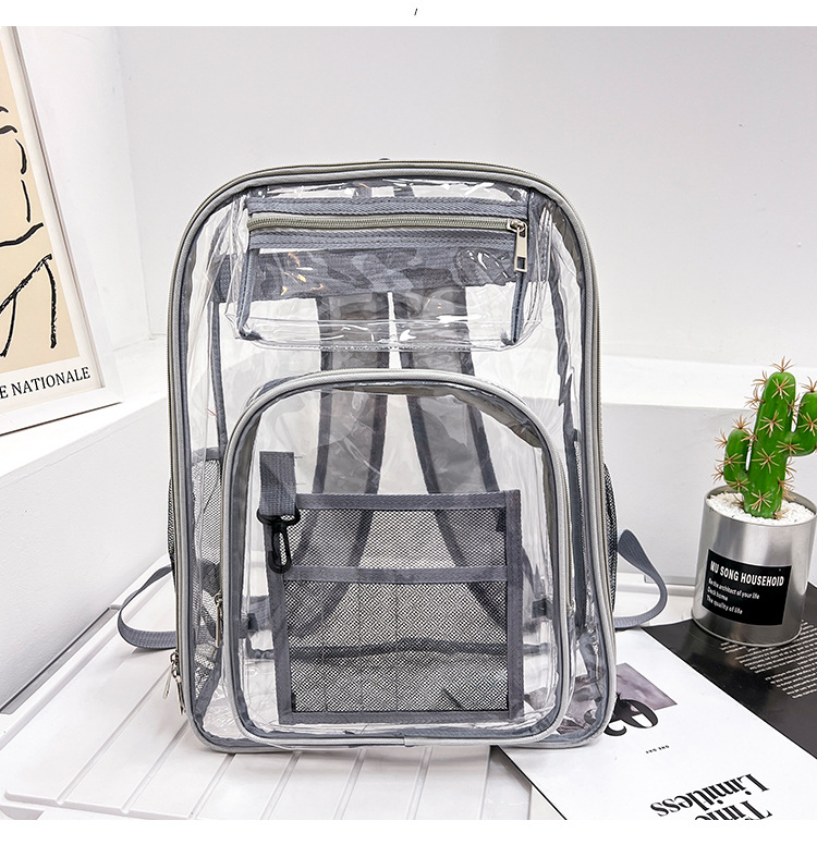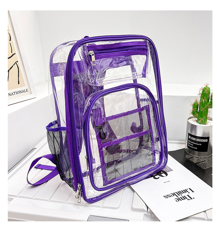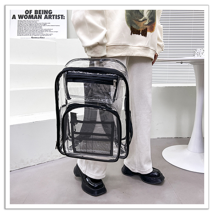 40 실크 국경 아마존 친환경 pvc 투명 배낭 패션 방수 학생 학교 가방 투명 배낭 젤리스토어 가기