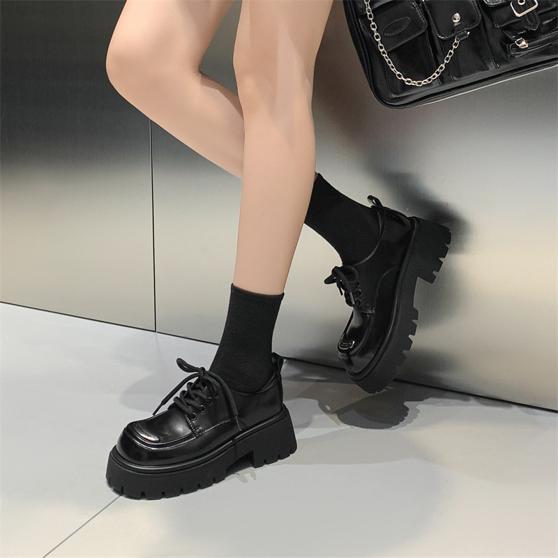 나비 O 작은 가죽 신발 단층 신발 여성용 라운드 헤드 두꺼운 굽 두꺼운 바닥 레이스 업 2023 가을 새로운 높은 높이 모든 경기 유니폼 신발스토어 가기
