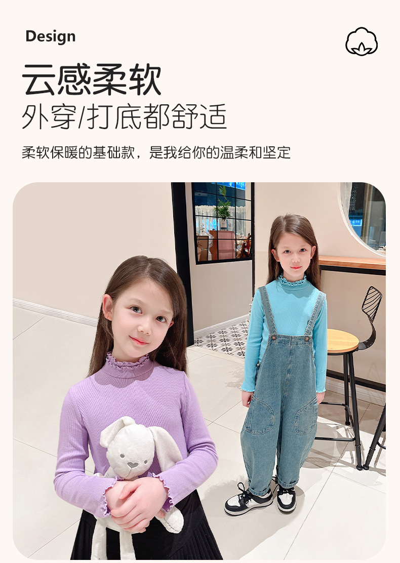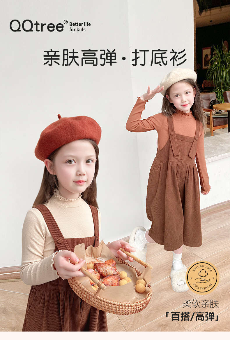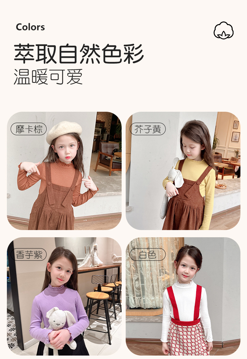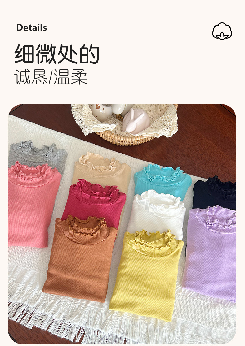 Y 가을 겨울 여아용 이너웨어 한국 스타일 더블 레이스 솔리드 컬러 티셔츠 가을 겨울 여아용 긴팔 이너웨어 아기 상의스토어 가기