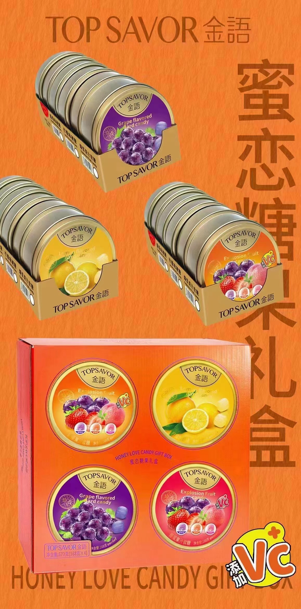 진 유 허니 캔디 레몬 포도 하드 캔디 168g VC 퓨레 주스 추가 소프트 캔디 라운드 통조림 선물 상자스토어 가기