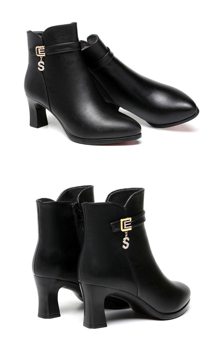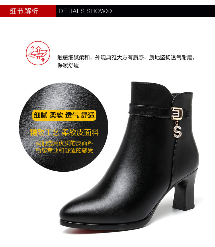 짧은 부츠 여성의 가을과 겨울 새로운 편안한 하이힐 부츠 뾰족한 꽉 플랫폼 기모 중년 여성 부츠스토어 가기