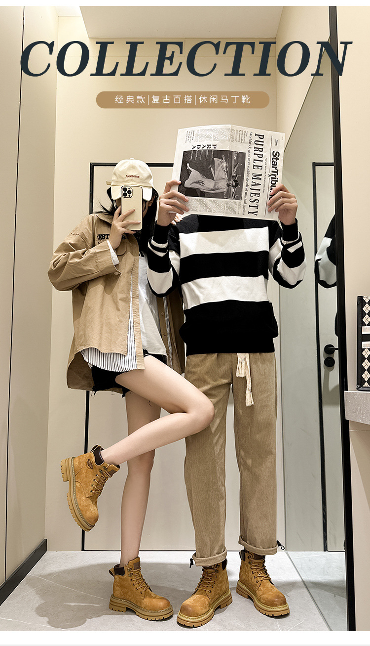 3008-9 커플 대황 부츠 여성용 작은 두꺼운 바닥 상승 마틴 부츠 기관차 야외 툴링 부츠 남성 패션
