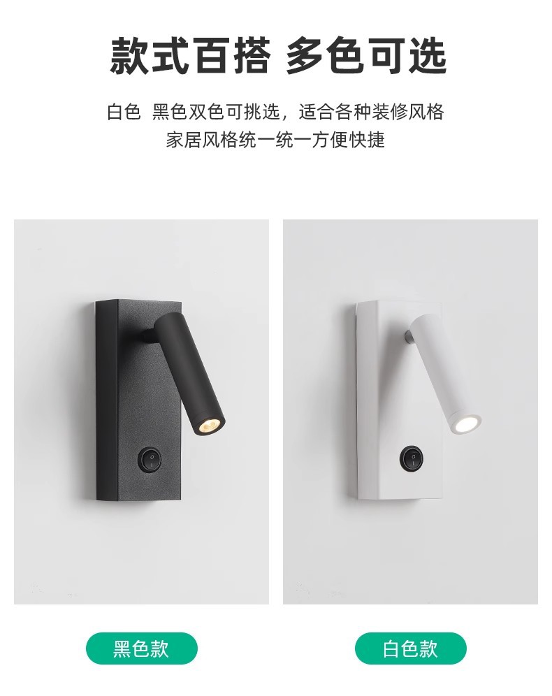 심플한 거실 소파 분위기 스포트라이트 침대 옆 독서 회전 소형 벽 램프 호텔 객실 엔지니어링 램프 표면 장착형 다운라이트스토어 가기