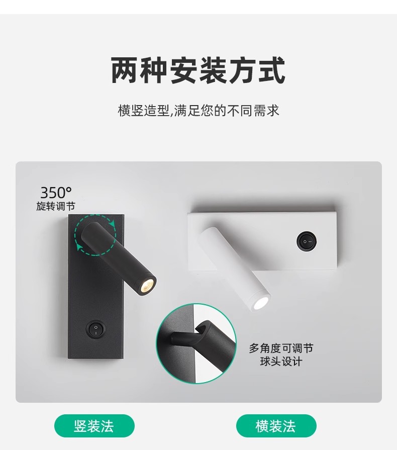 심플한 거실 소파 분위기 스포트라이트 침대 옆 독서 회전 소형 벽 램프 호텔 객실 엔지니어링 램프 표면 장착형 다운라이트