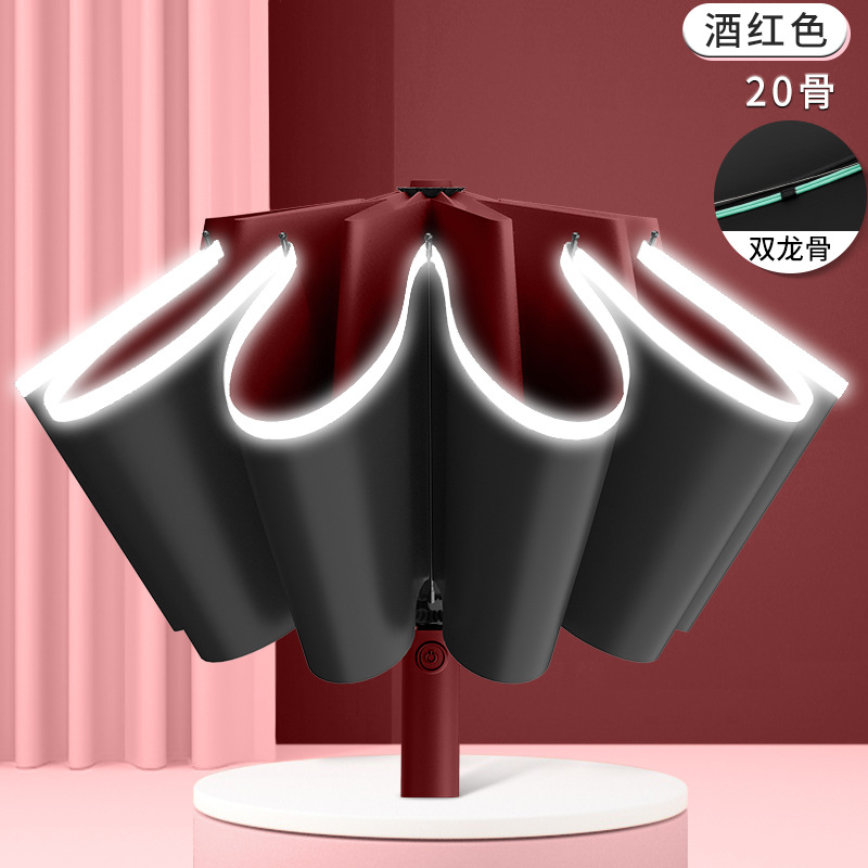 • [자동] 10 본 리버스 우산은 차 버건디 젖지 않습니다