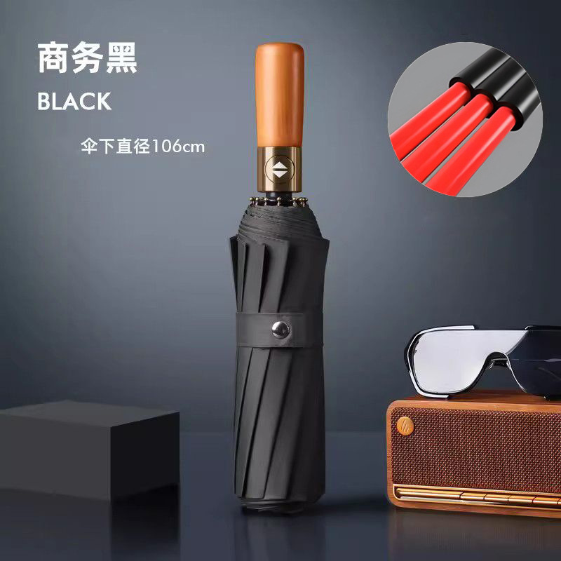 • [84단 강화 초내풍 우산 갈비뼈 비즈니스 나무 손잡이] 블랙