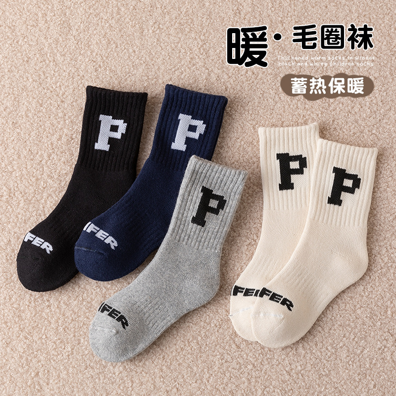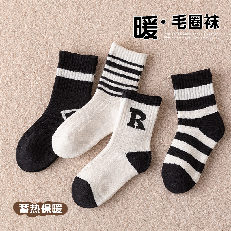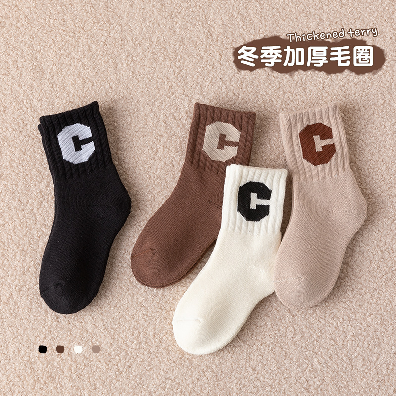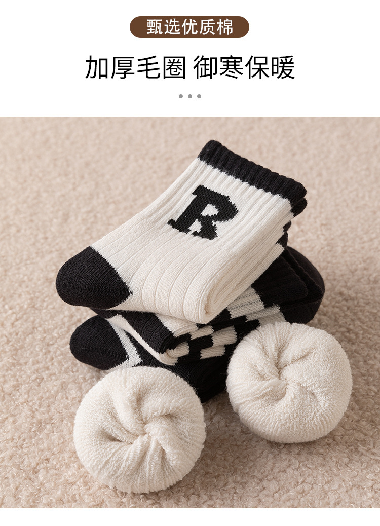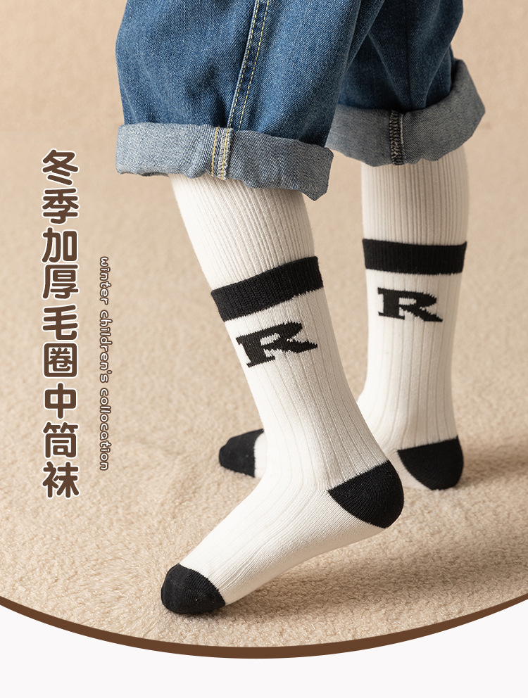 겨울 두꺼운 테리 어린이 양말 줄무늬 편지 R 아기 수건 양말면 양말스토어 가기