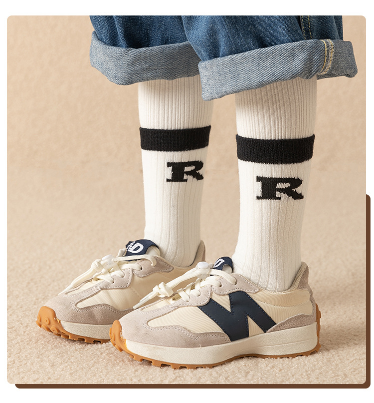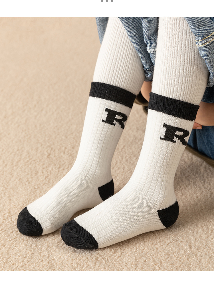 겨울 두꺼운 테리 어린이 양말 줄무늬 편지 R 아기 수건 양말면 양말