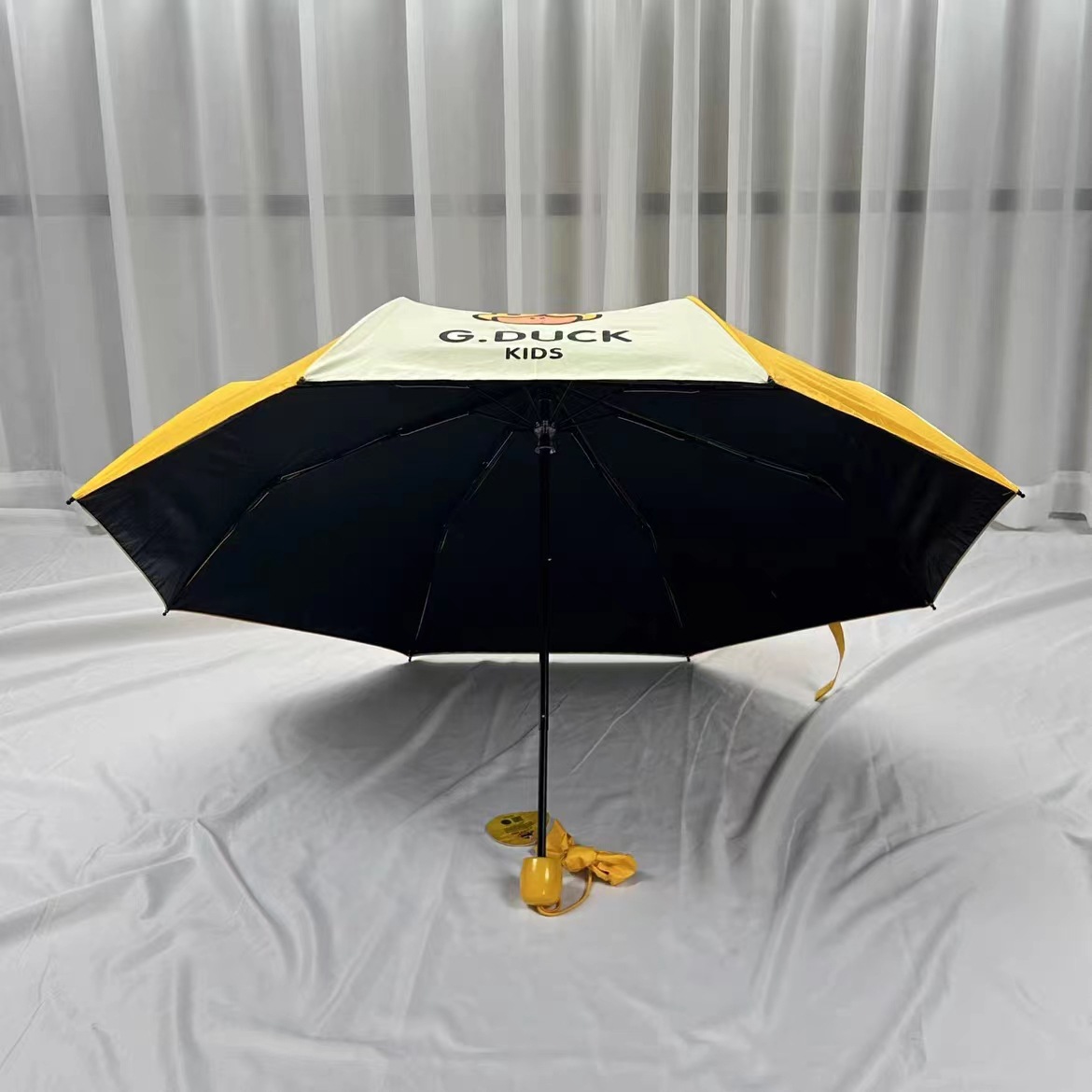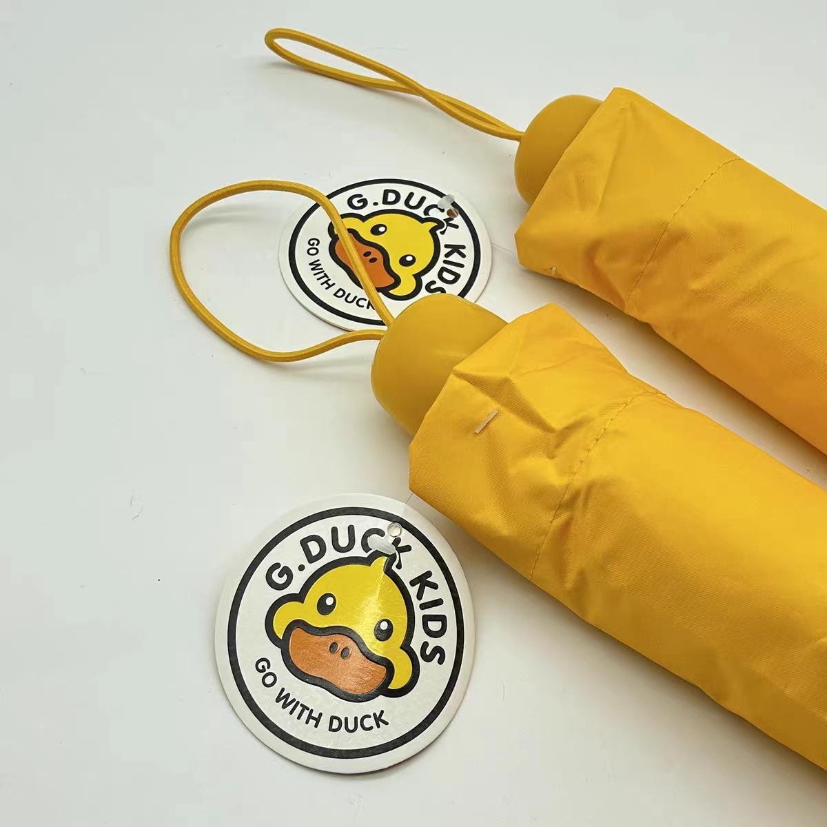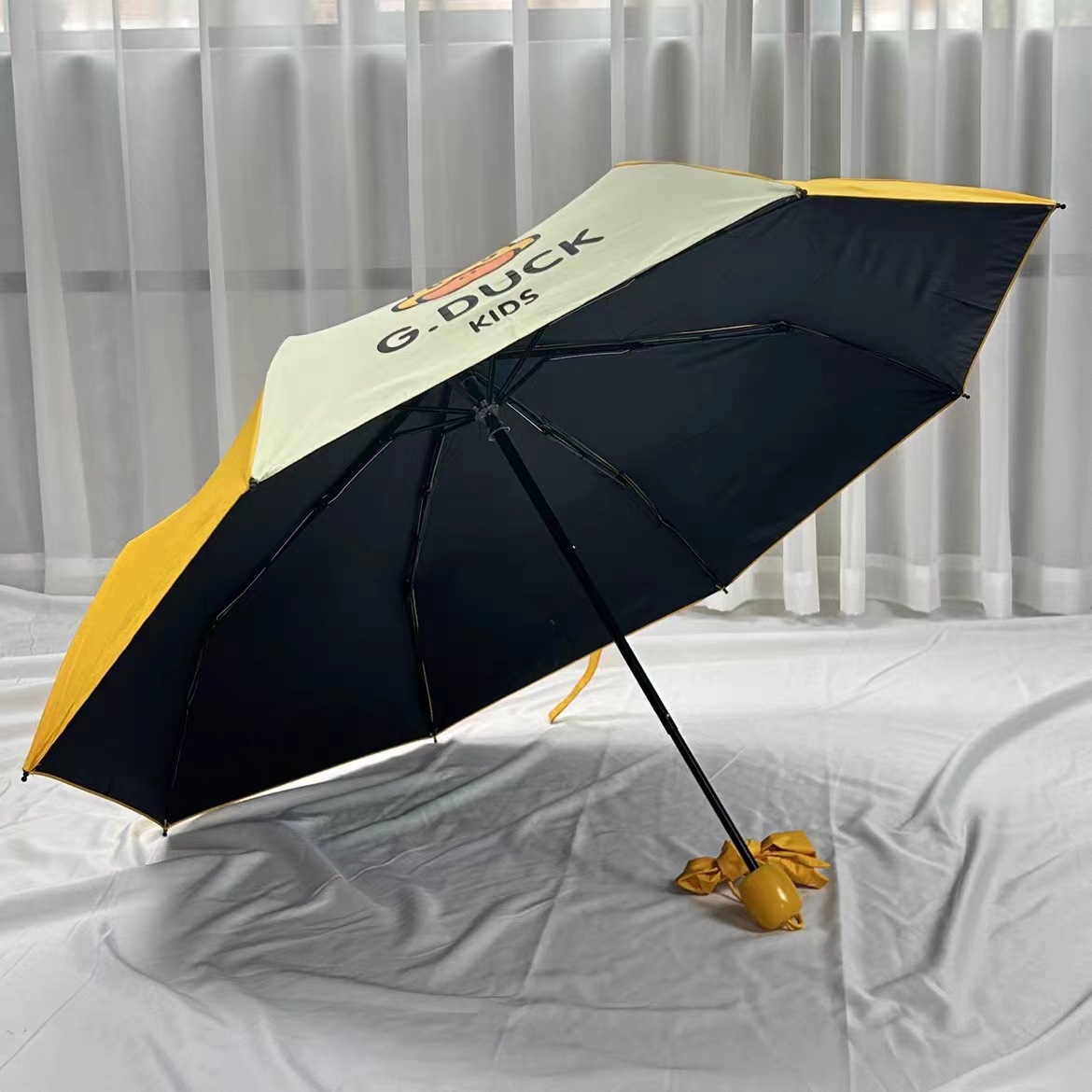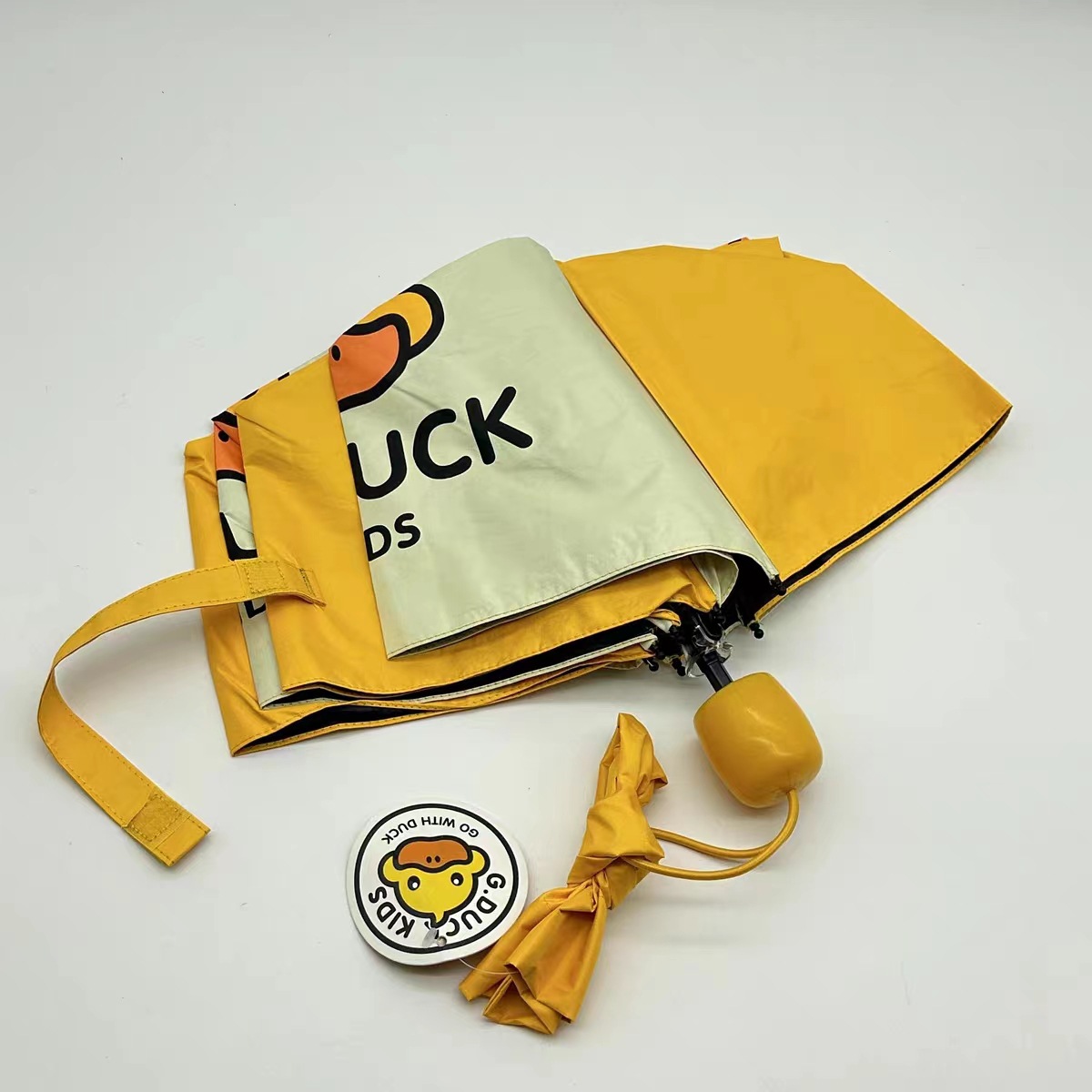 어린이와 성인 모두를 위한 70% off 귀여운 만화 캐릭터 완전 차광 블랙 글로시 자외선 차단 휴대용 노란 오리 우산