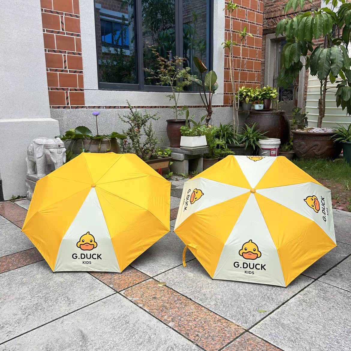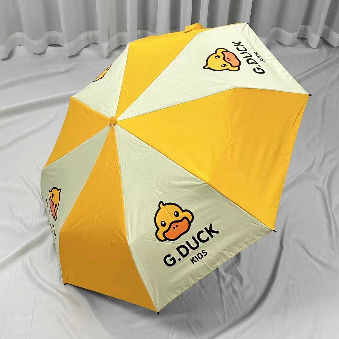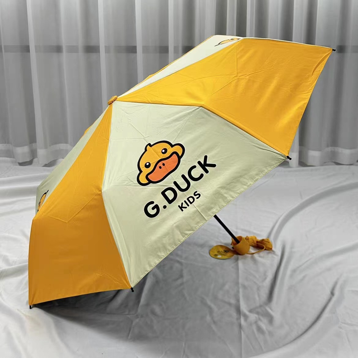 어린이와 성인 모두를 위한 70% off 귀여운 만화 캐릭터 완전 차광 블랙 글로시 자외선 차단 휴대용 노란 오리 우산