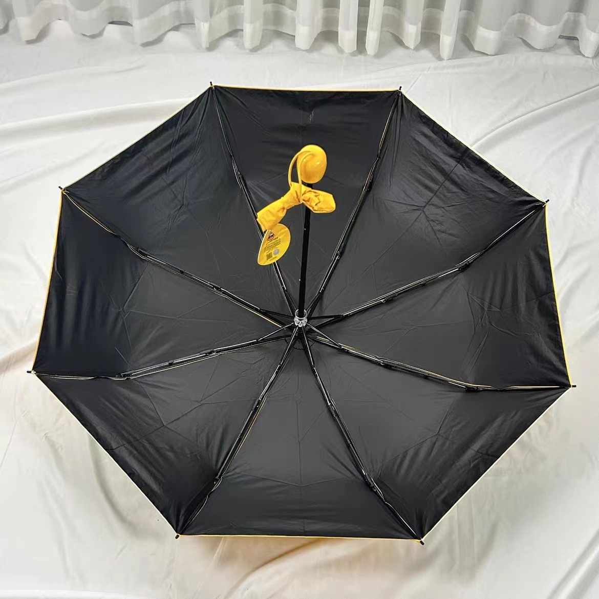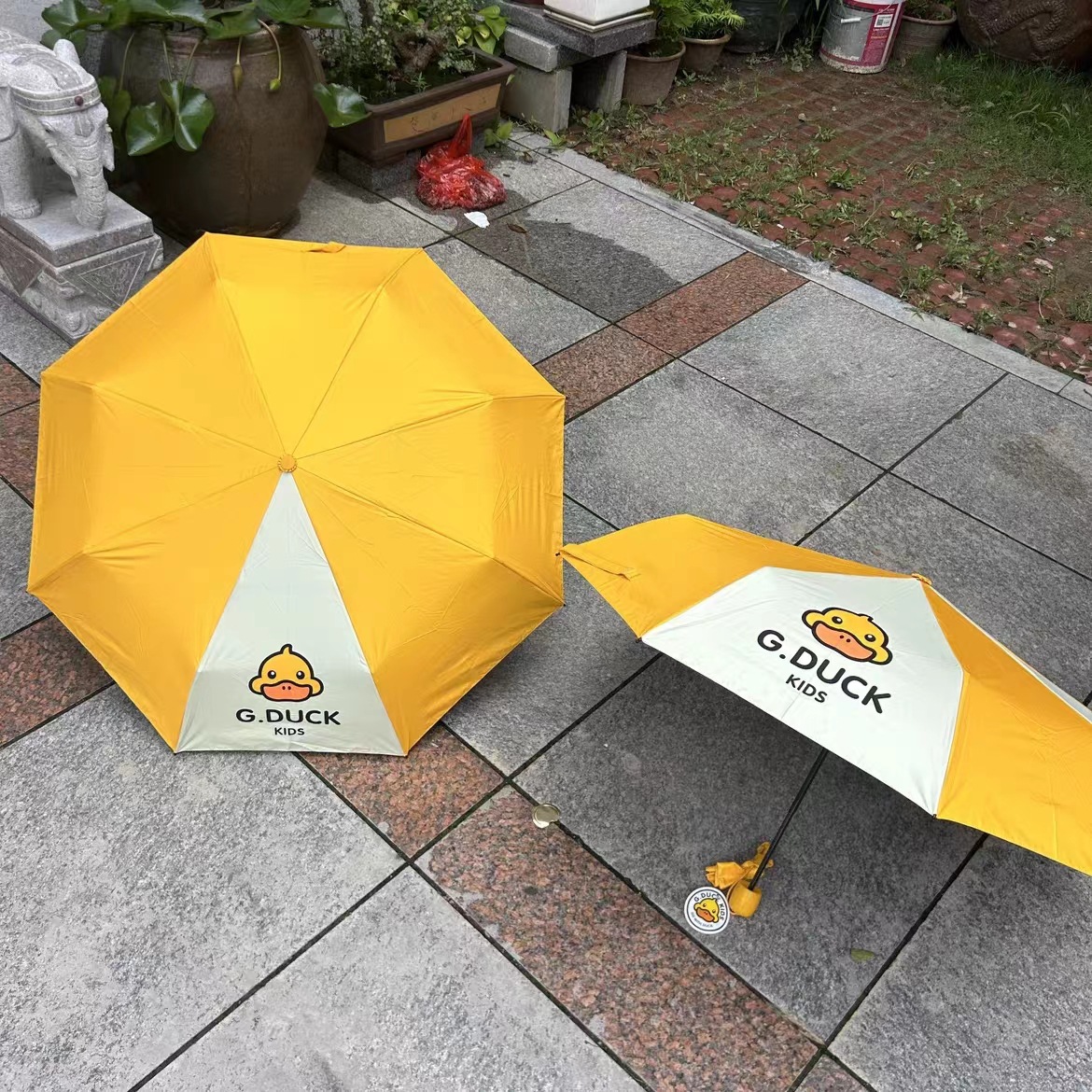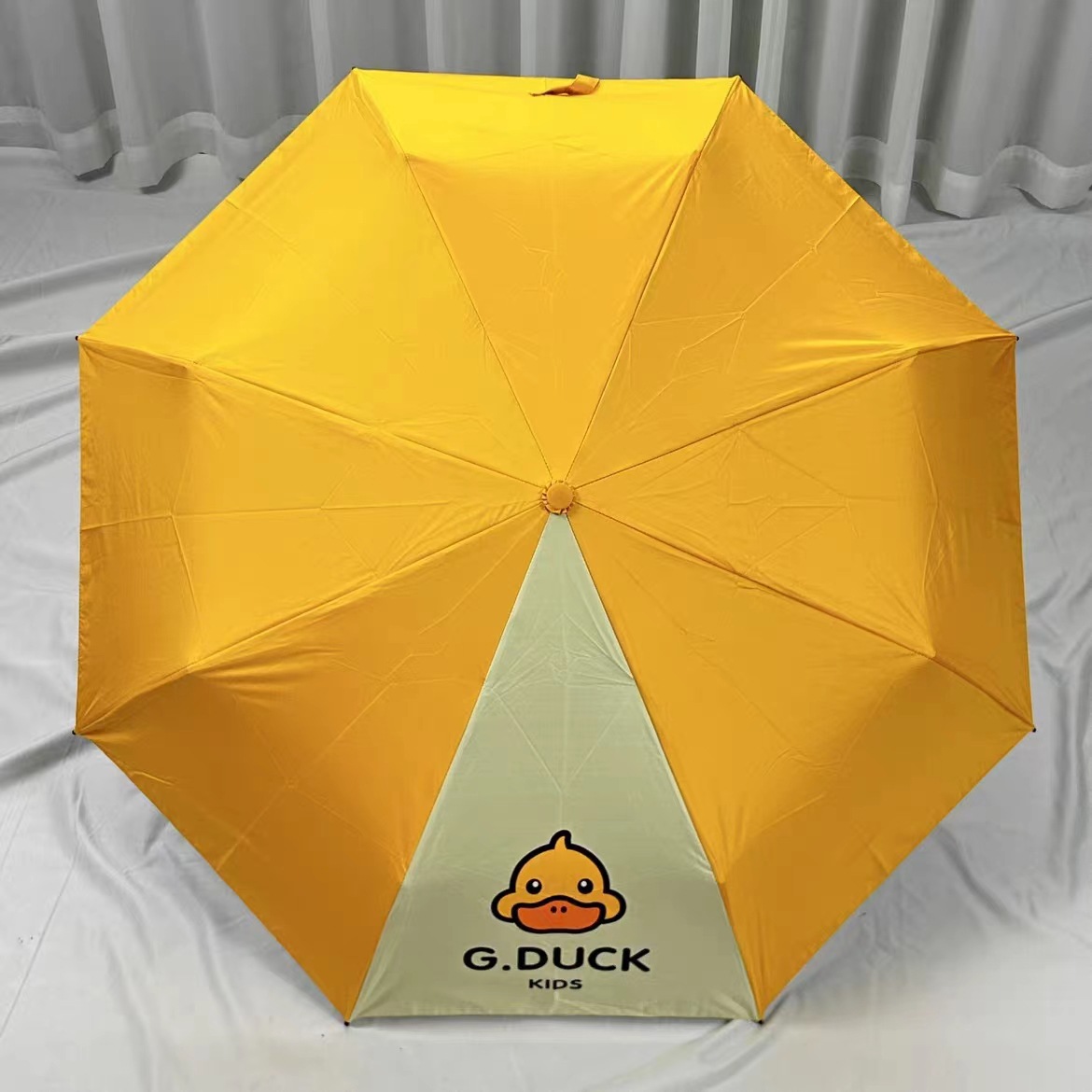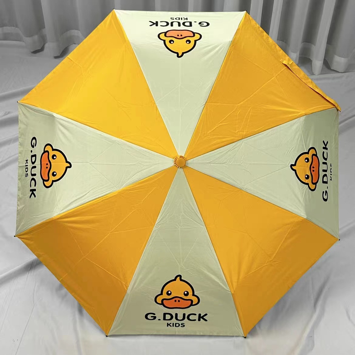 어린이와 성인 모두를 위한 70% off 귀여운 만화 캐릭터 완전 차광 블랙 글로시 자외선 차단 휴대용 노란 오리 우산