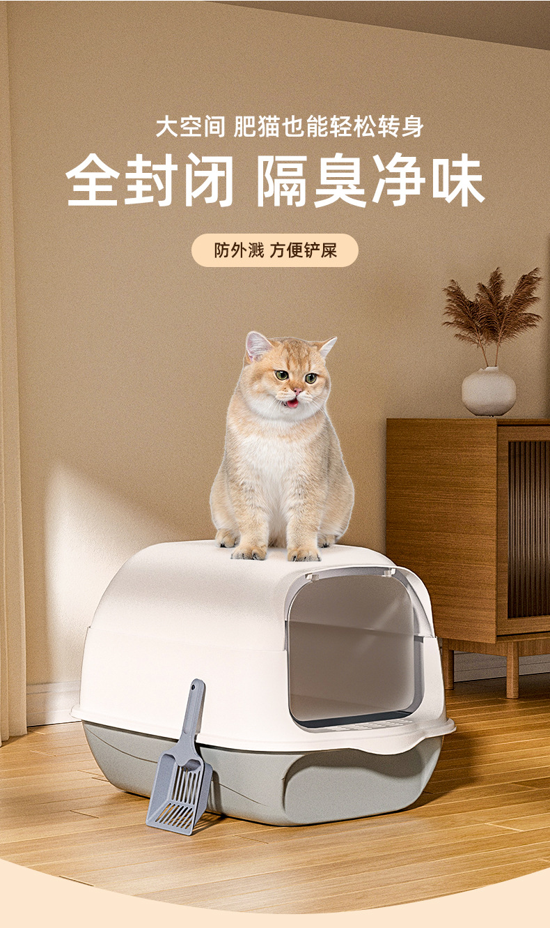 고양이 쓰레기통 대형 완밀폐형 악취 방지 고양이 화장실 이동식 고양이 물튀김 방지 고양이 쓰레기통 도매