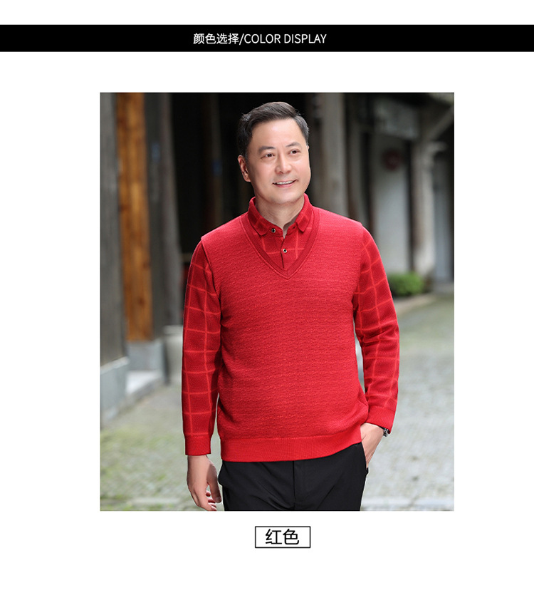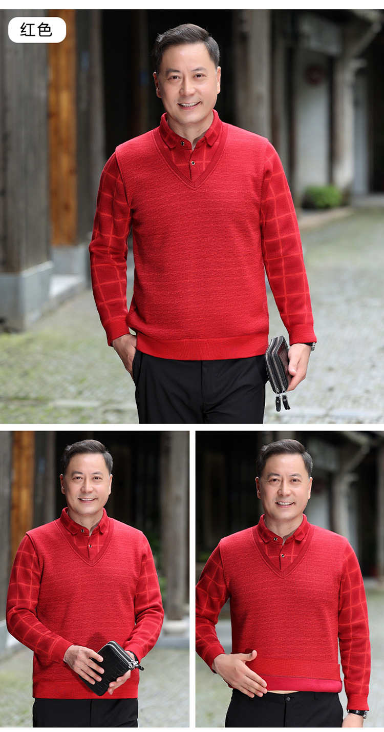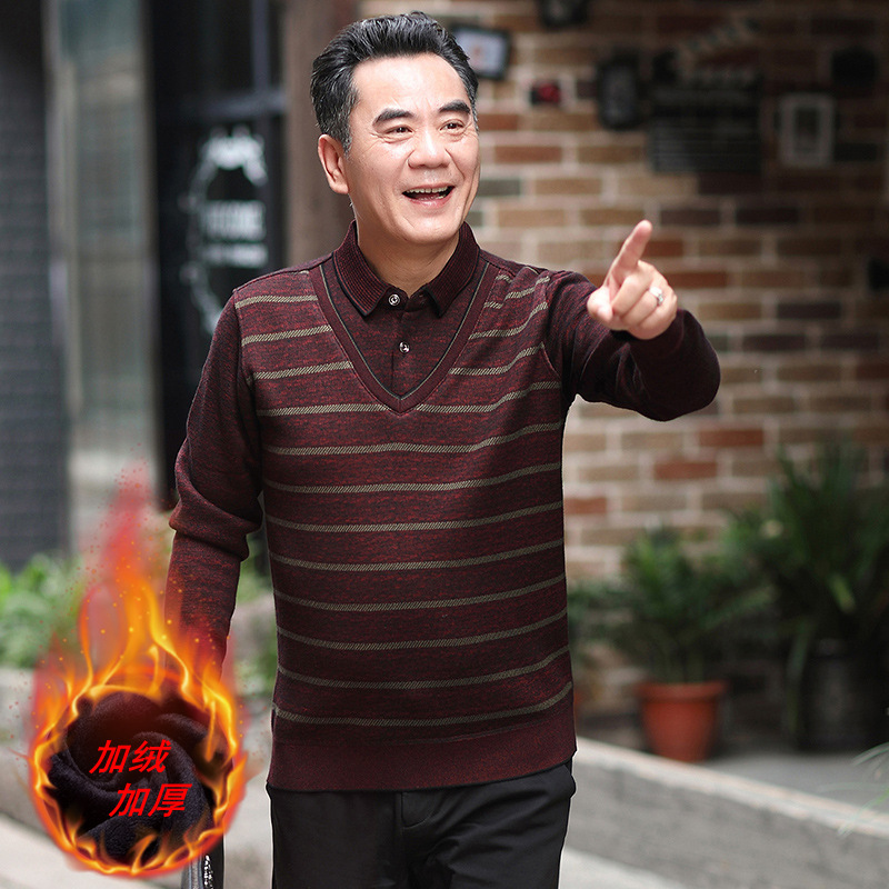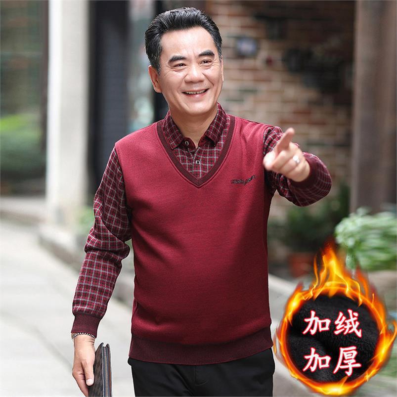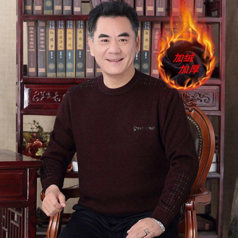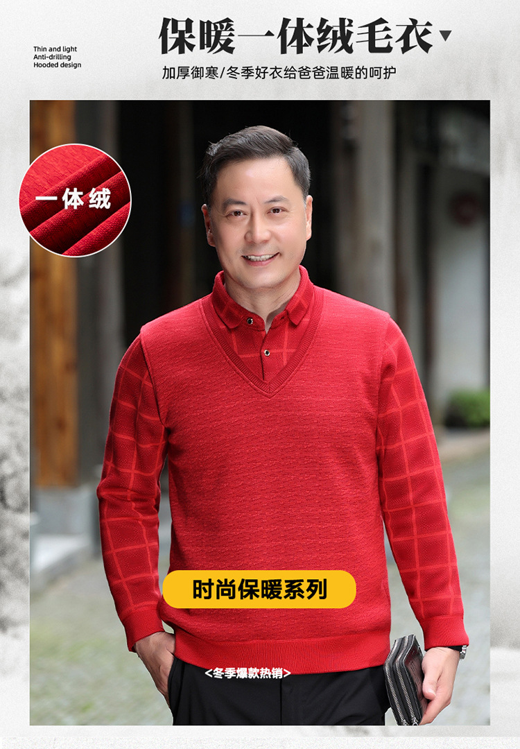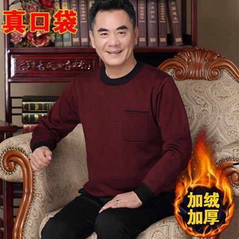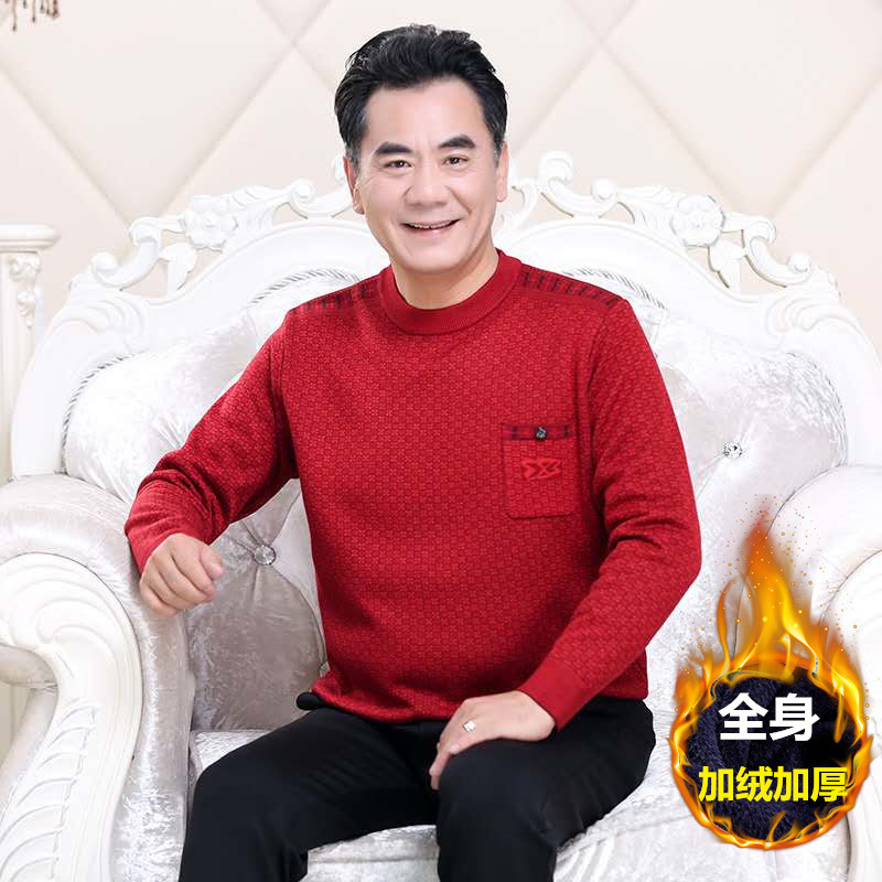 아빠 기모 두꺼운 스웨터 남자의 큰 빨간 따뜻한 옷 가을과 겨울 중년 할아버지의 인생 년 니트웨어