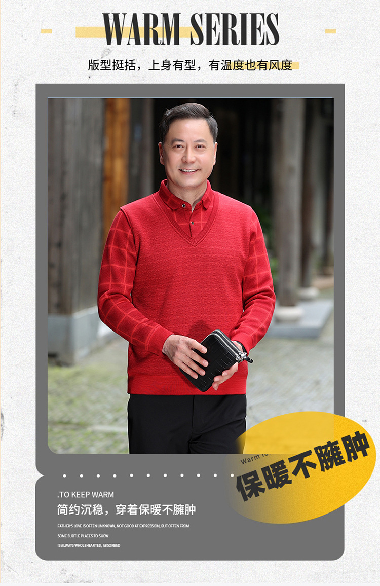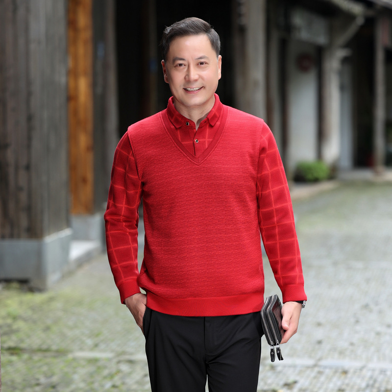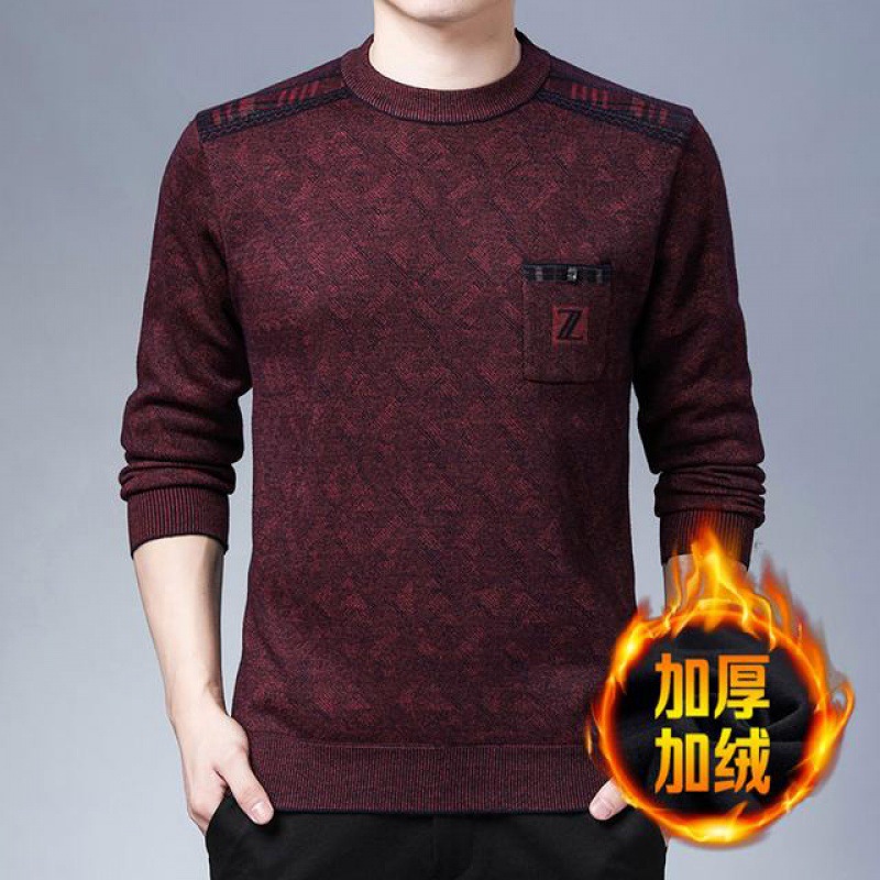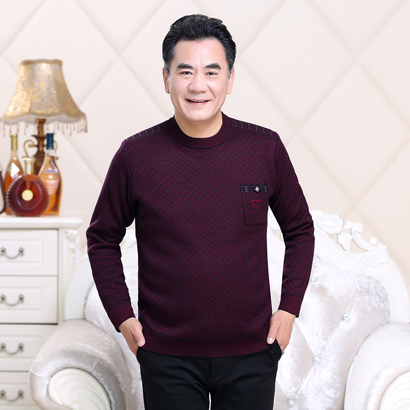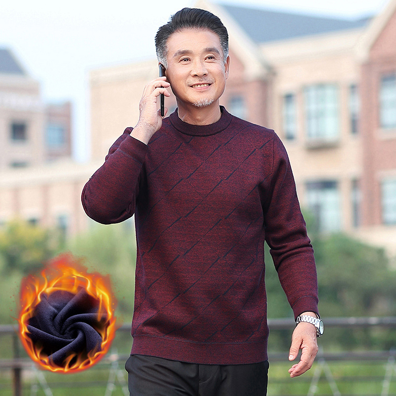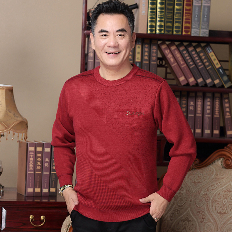 아빠 기모 두꺼운 스웨터 남자의 큰 빨간 따뜻한 옷 가을과 겨울 중년 할아버지의 인생 년 니트웨어스토어 가기