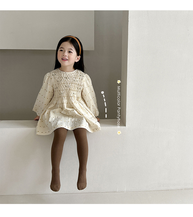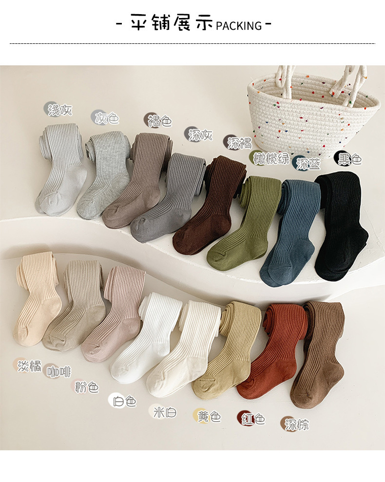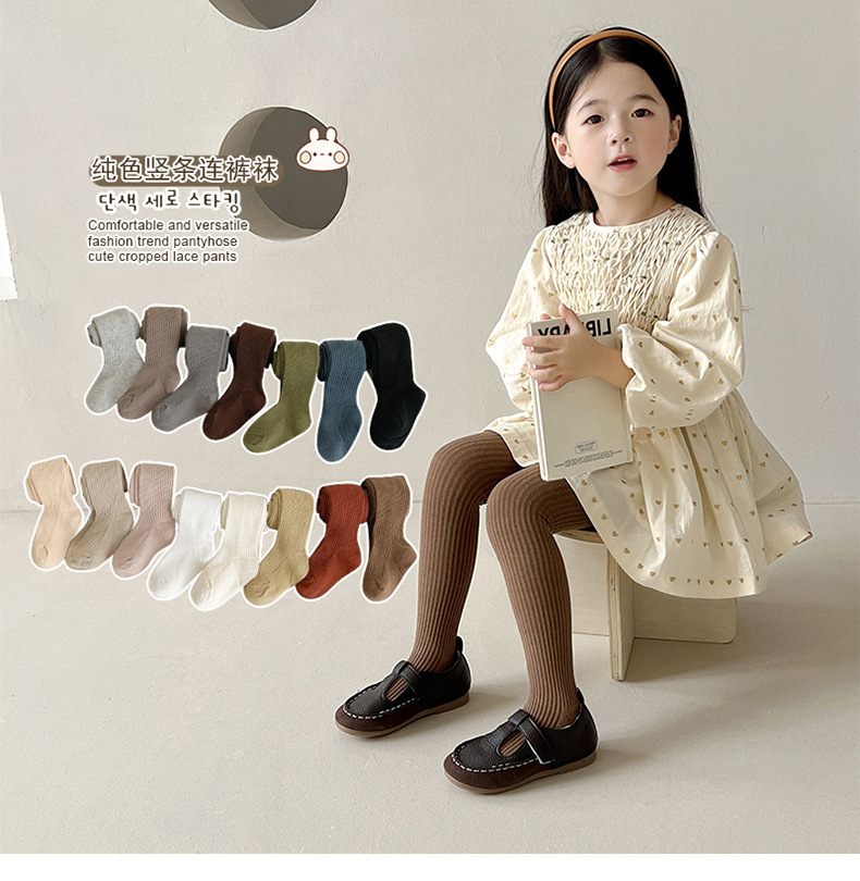 여아 레깅스 2023 가을과 겨울 새로운 단색 세로 줄무늬 어린이 레깅스 한국식 여아 팬티 스타킹