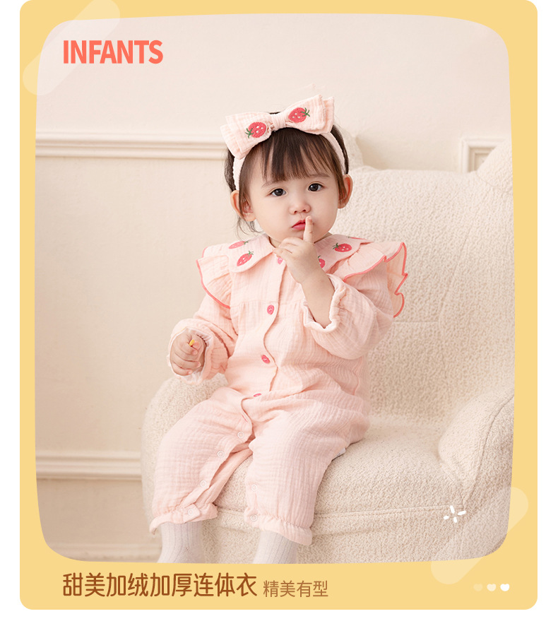 아이디어 아기의 가을과 겨울 기모 점프 슈트 2023 아기 소녀의 겨울 의상 두꺼운 따뜻한 겉옷 헤어 밴드 3359스토어 가기