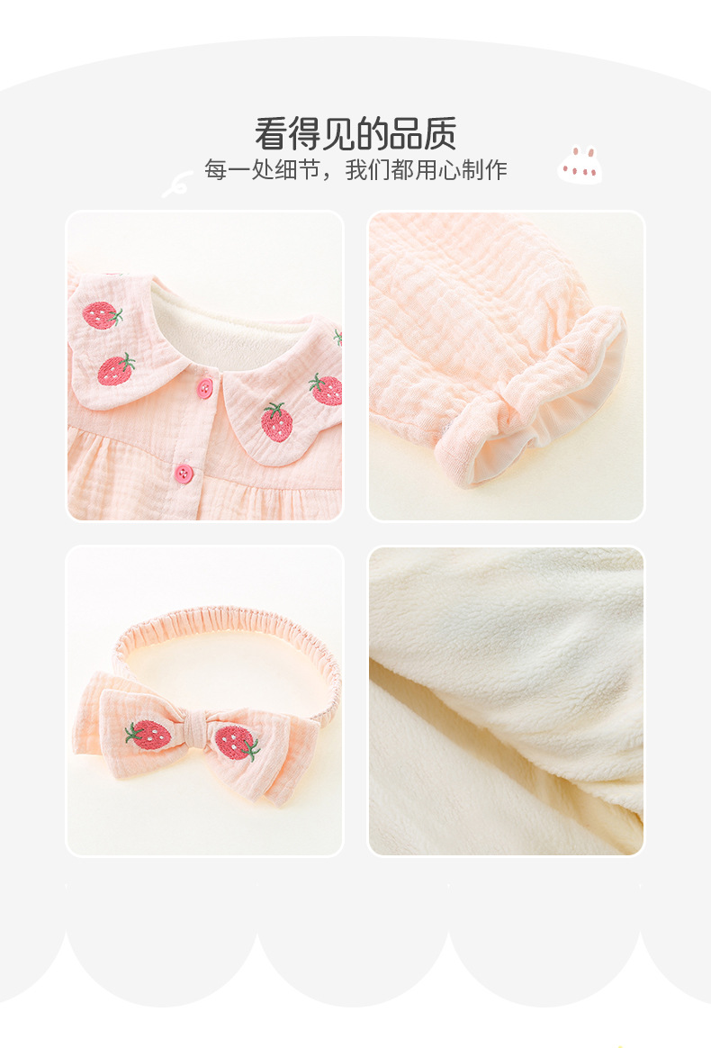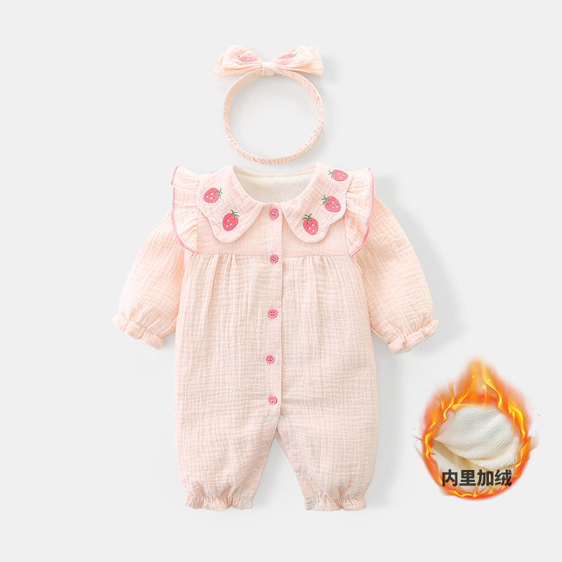 아이디어 아기의 가을과 겨울 기모 점프 슈트 2023 아기 소녀의 겨울 의상 두꺼운 따뜻한 겉옷 헤어 밴드 3359