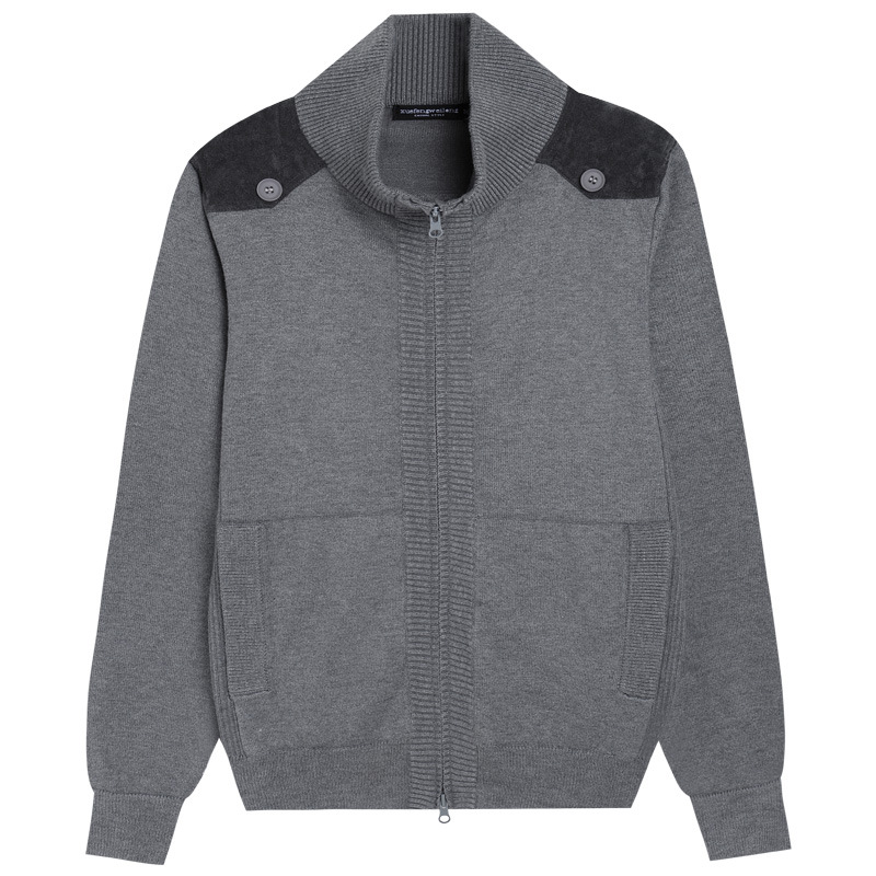 봄과 가을 새로운 남자의 두꺼운 단색 자동차 천 단추 남자의 라이트 그레이 따뜻한 일반 스웨터에 대 한 지퍼와 니트 카디건