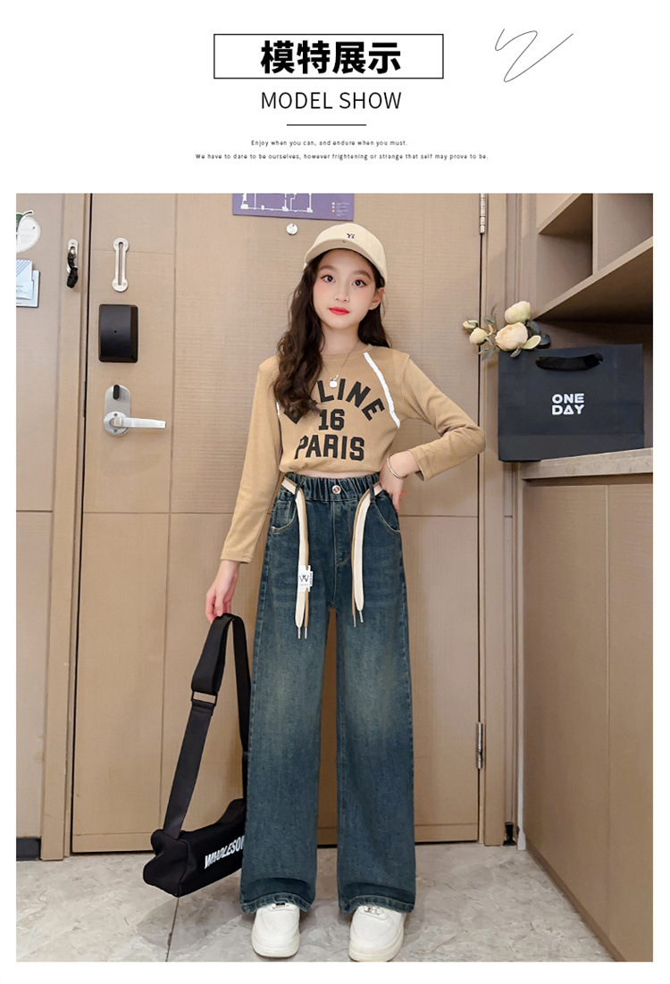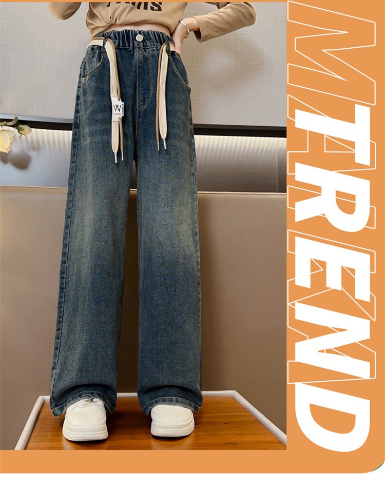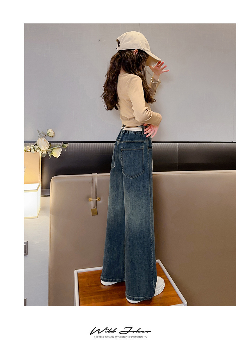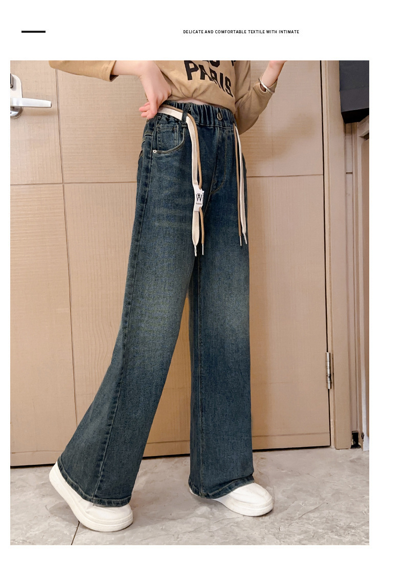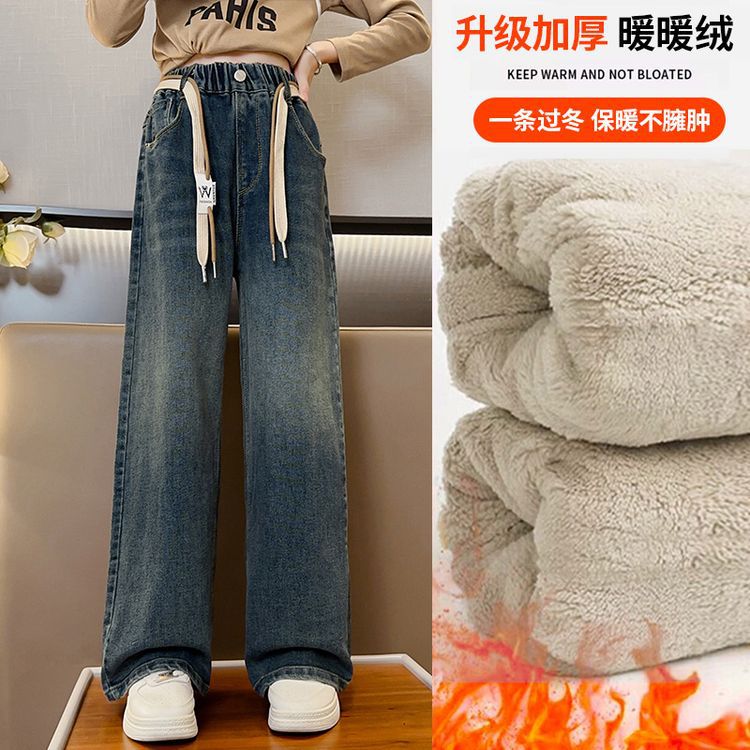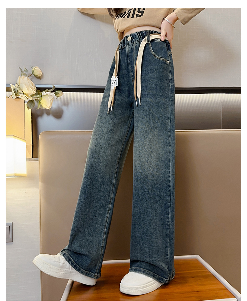 여아 데님 와이드 팬츠 봄 가을 신상 2024 루즈한 중대형 아동복 스트레이트 롱 팬츠 가을 겨울 플러스 벨벳과 두꺼워짐스토어 가기