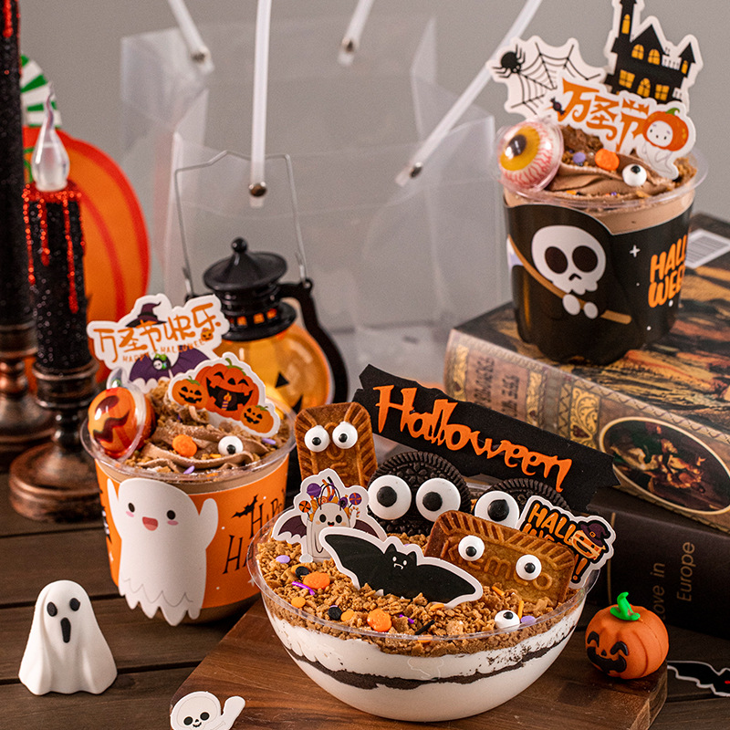 인터넷 축하 할로윈 무스 볼 케이크 장식 휴대용 호박 램프 작은 기름 램프 장식품 보보 컵 만화 포장