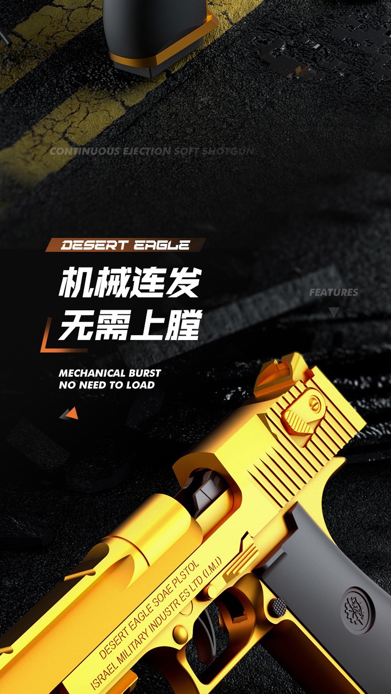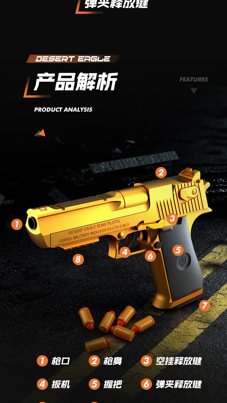 버스트 골드 데저트 이글 자동 쉘 던지기 소프트 총알 총 글록 컨트롤 교수형 챔버 어린이 장난감 시뮬레이션 남성스토어 가기