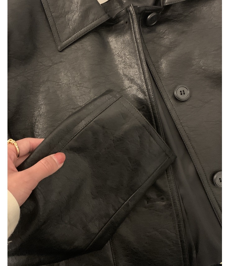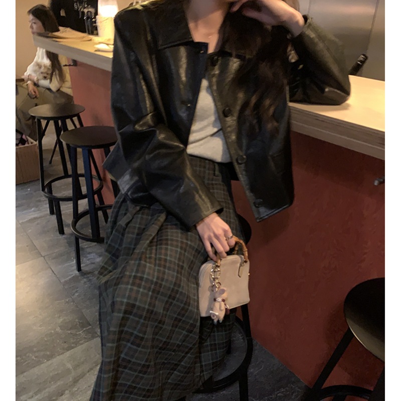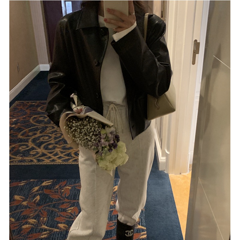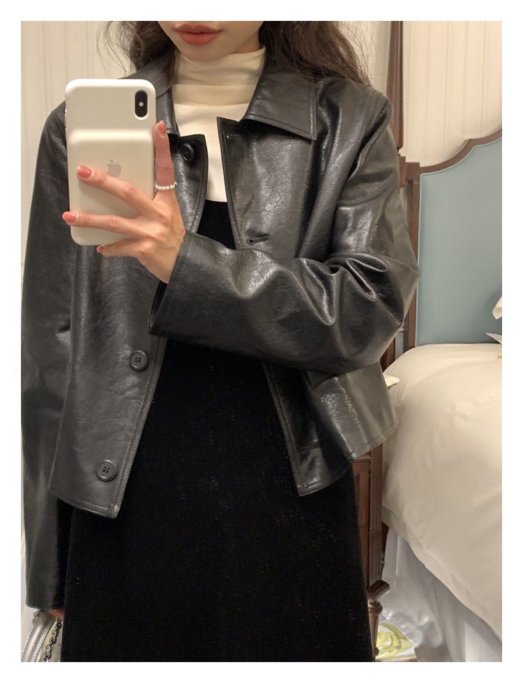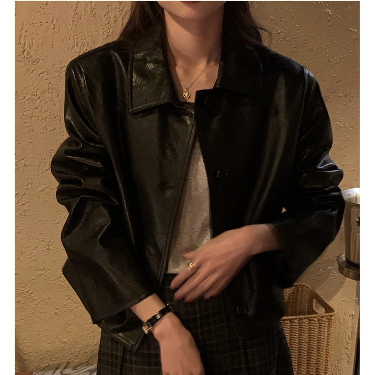 여성을위한 수제 검은 색 짧은 가죽 자켓 2025 봄, 가을 새로운 느슨한 슬림 PU 가죽 자켓 하이 엔드스토어 가기