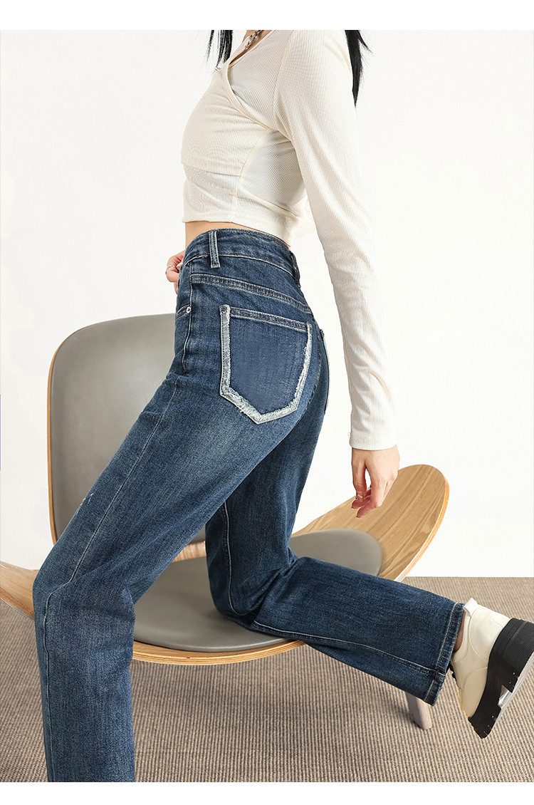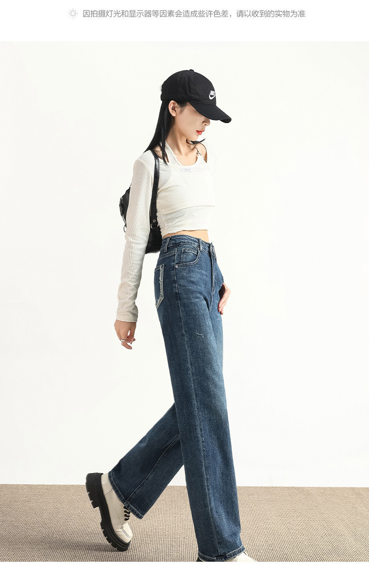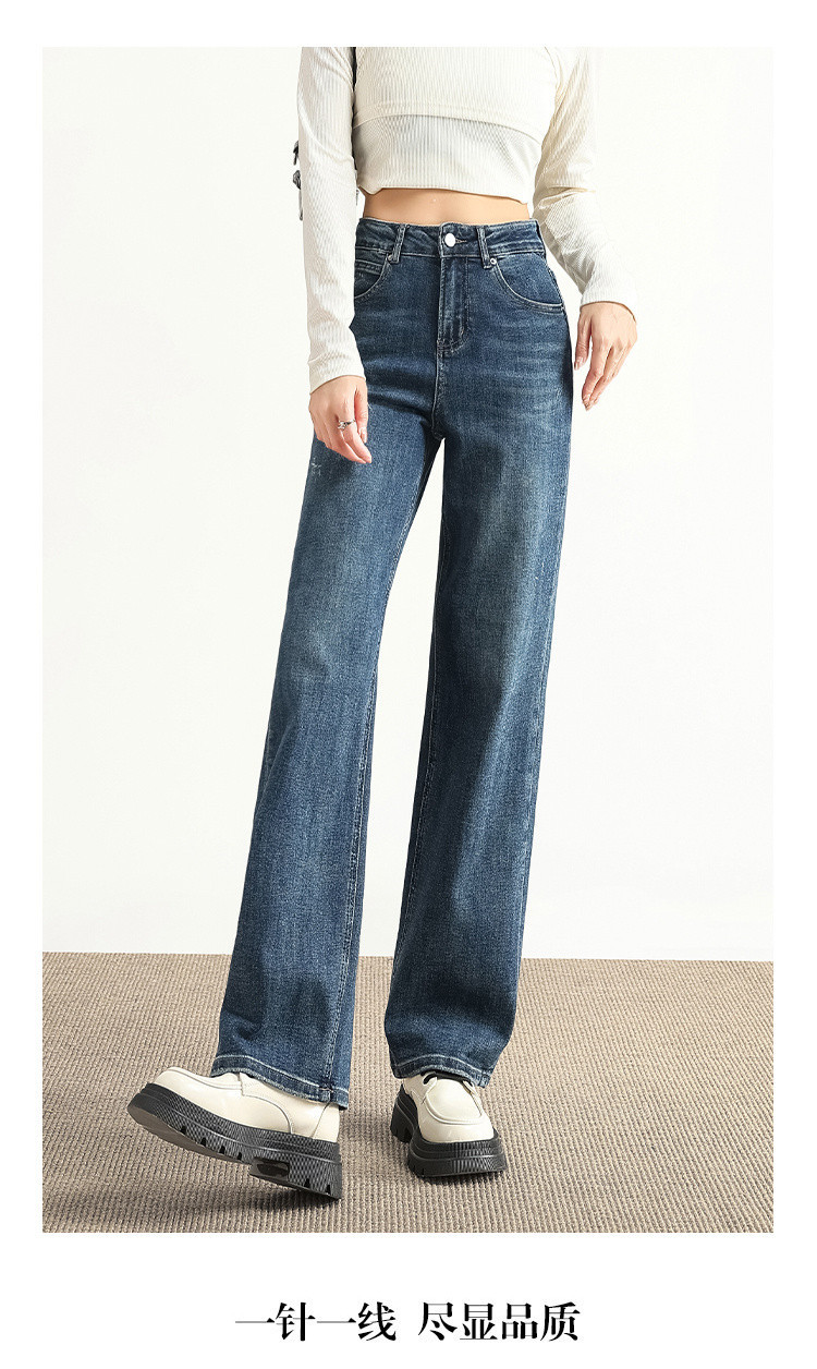 빈티지 하이 웨이스트 스트레이트 청바지 여성용 봄과 가을 새로운 고급 모든 매치 스몰 와이드 레그 캐주얼 청바지 여성스토어 가기