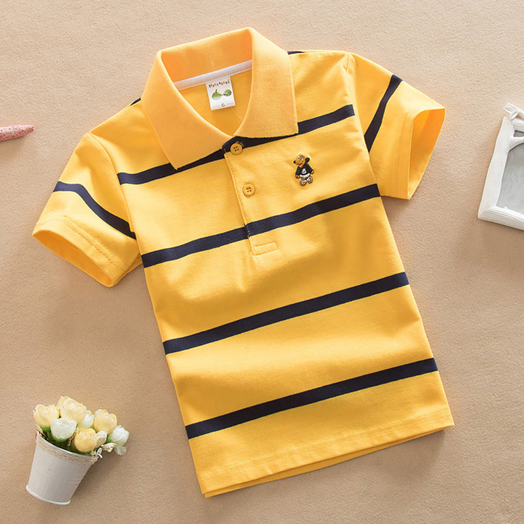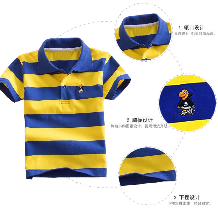 공장 직공급 아동복 도매 줄무늬면 옷깃 반팔 남아 티셔츠 여름 새 아동 폴로 셔츠스토어 가기