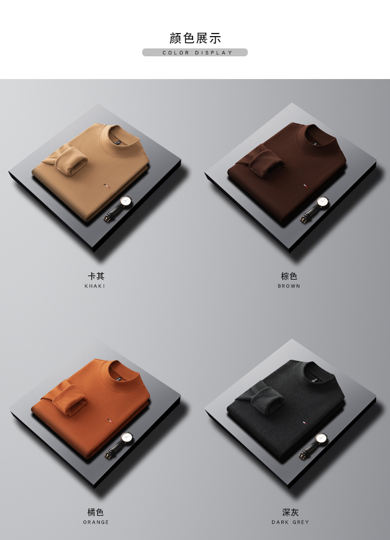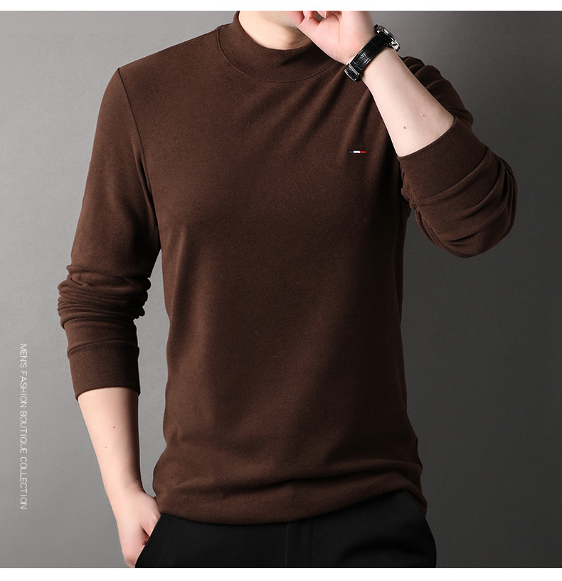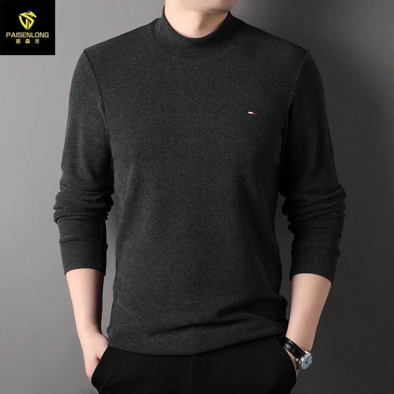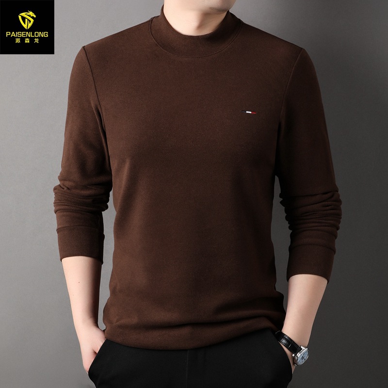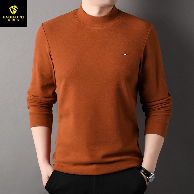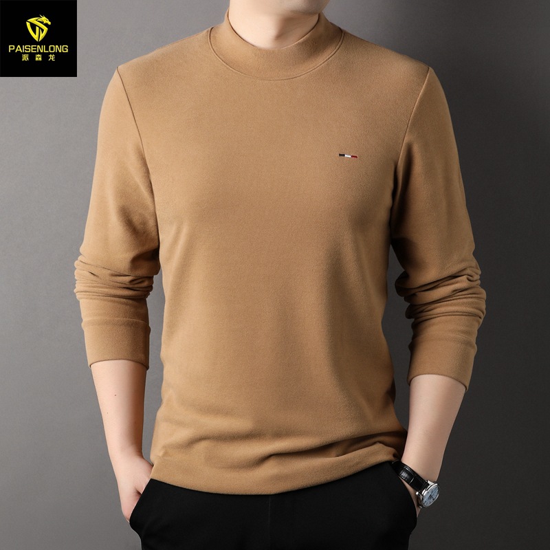 Paisenlong 가을/겨울 벨벳 남성용 긴팔 티셔츠 베이스 셔츠 하프 하이 칼라 양면 벨벳 두꺼운 따뜻한 멀티 컬러 티셔츠