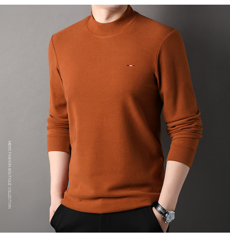 Paisenlong 가을/겨울 벨벳 남성용 긴팔 티셔츠 베이스 셔츠 하프 하이 칼라 양면 벨벳 두꺼운 따뜻한 멀티 컬러 티셔츠스토어 가기