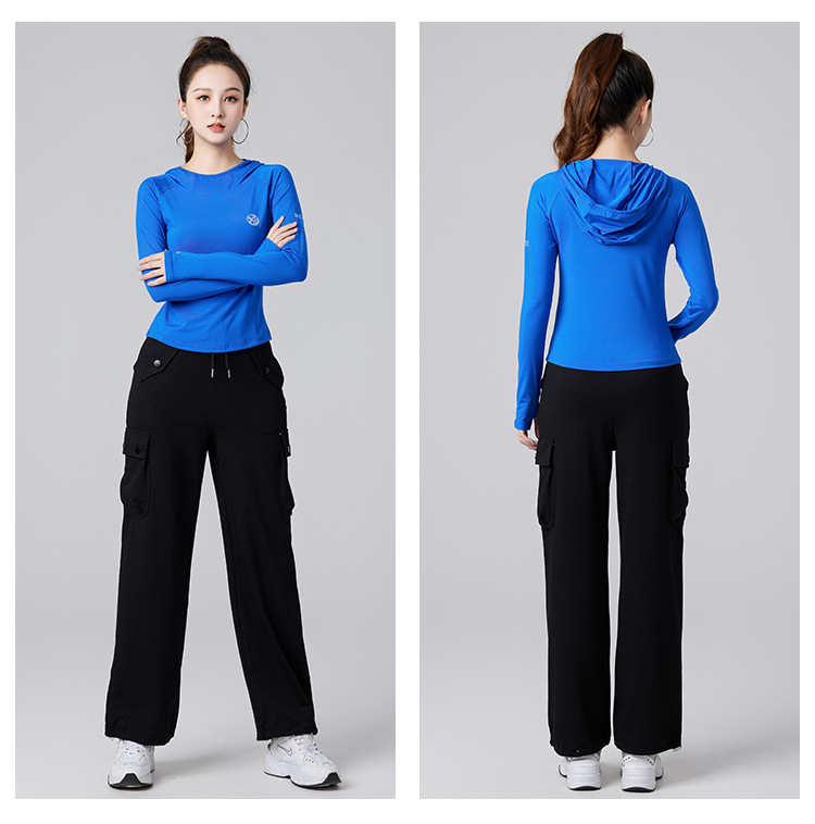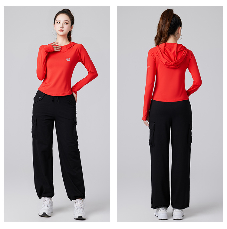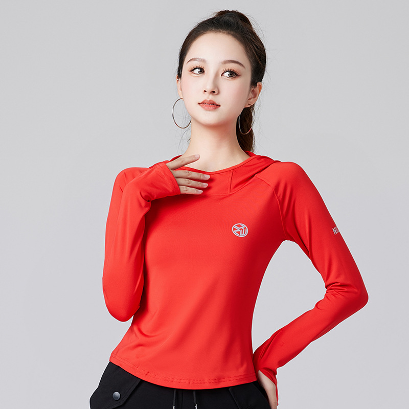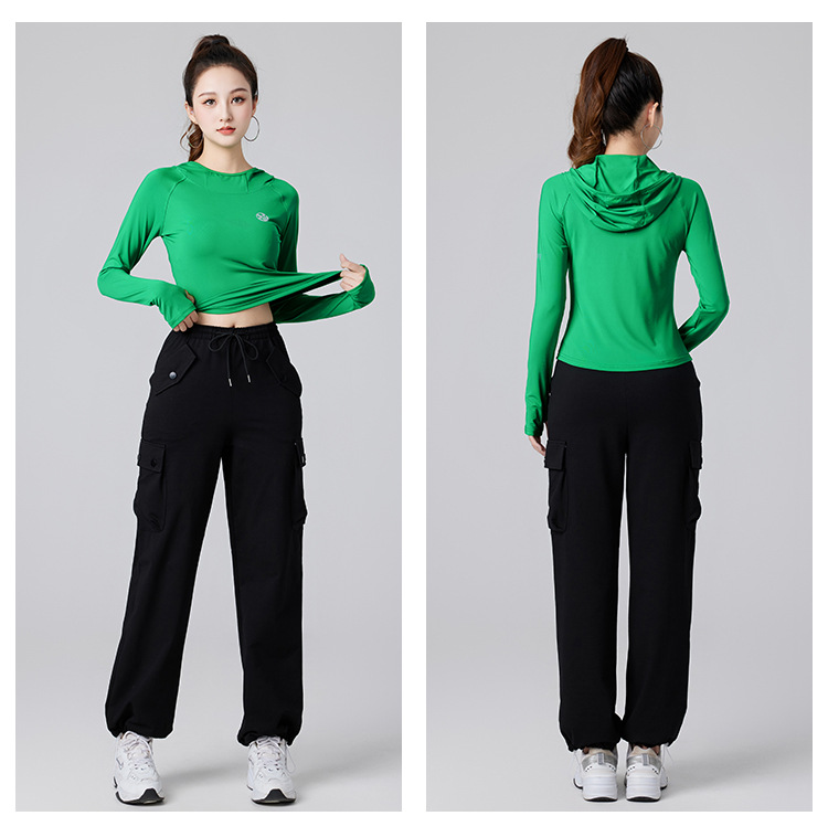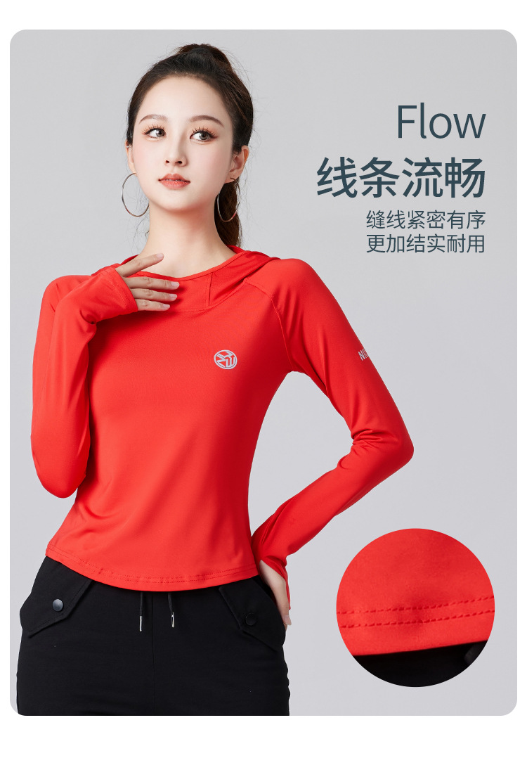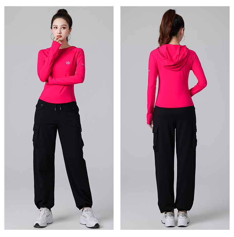봄과 가을 플러스 사이즈 야외 러닝 스타킹 여성 고탄력 빠른 건조 후드 슬림 패션 피트니스 스포츠 긴 소매