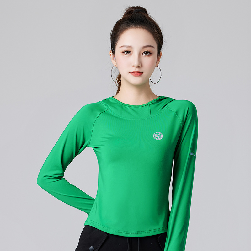봄과 가을 플러스 사이즈 야외 러닝 스타킹 여성 고탄력 빠른 건조 후드 슬림 패션 피트니스 스포츠 긴 소매스토어 가기