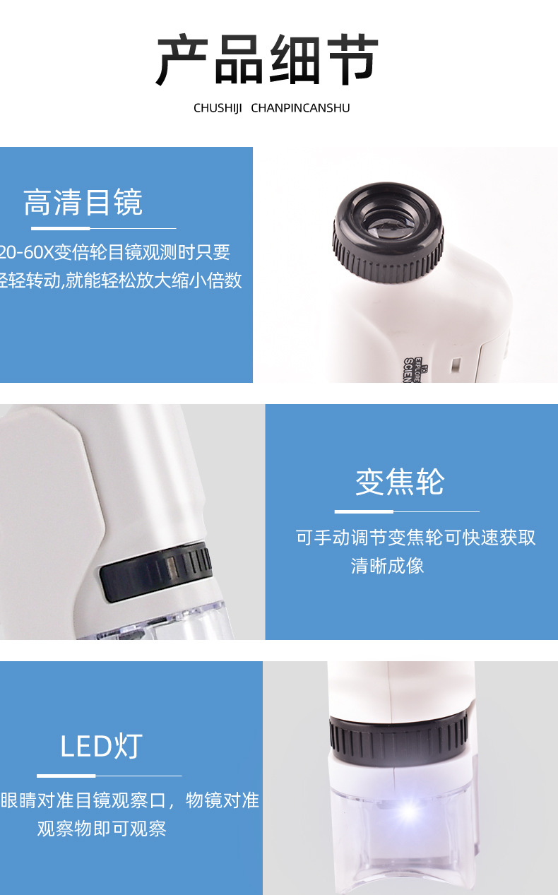 과학 실험이있는 어린이 광학 고화질 현미경 중학교 초등학교 교과서 교육 완구 선물
