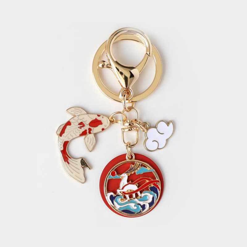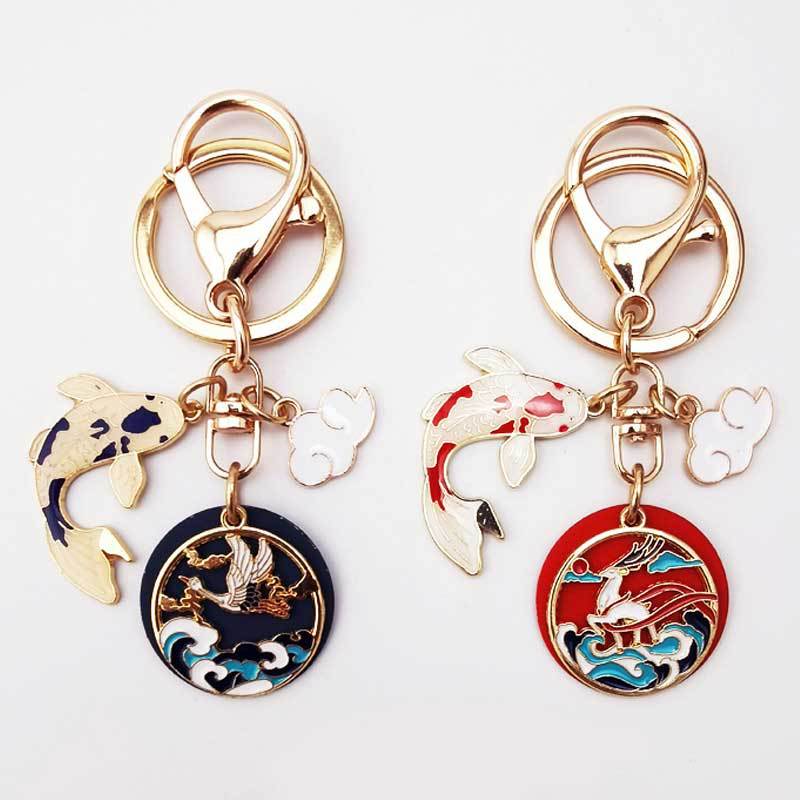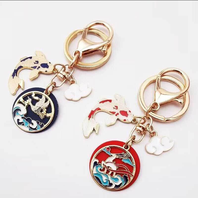 중국 골동품 잉어 열쇠 고리 빨간 상서로운 행운 크레인 신 사슴 열쇠 고리 커플 여자 친구 가방 장식품