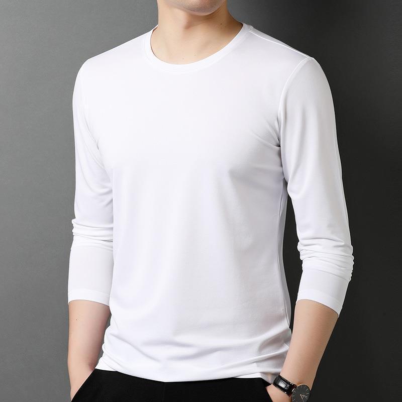 含桑蚕丝长袖针织T恤男士圆领纯色秋冬新款体恤衫中青年男装B6008